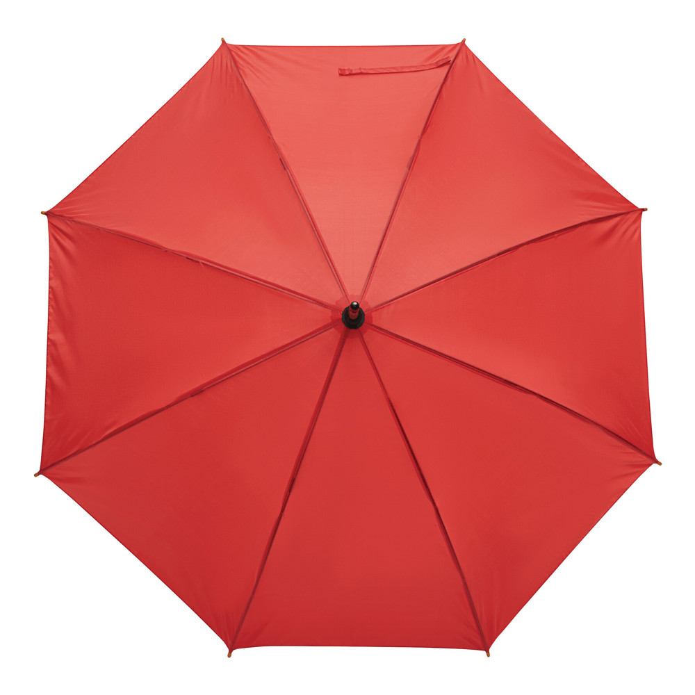 Automatic wooden stick umbrella JAZZ: with fibreglass ribs, wooden tips and wooden crook handle, polyester canopy made from recycled plastic (RPET), closing strap with Velcro