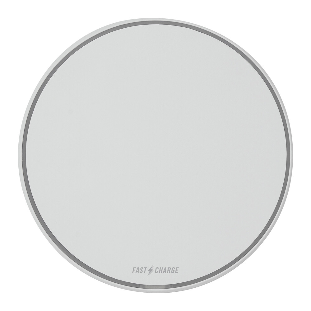 Wireless charging station CHARGE FAST: wireless charging of the device by placing it on the contact surface (device must be compatible with inductive charging), USB cable with USB Type-C plug (length approx. 80 cm), the ring lights up blue during the charging process and green when charging is complete, input power: 5V/3A, 9V/2A, output power: 15W, with temperature control and foreign object detection, 4 support feet on the bottom