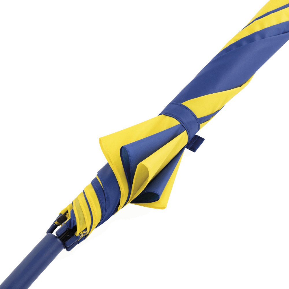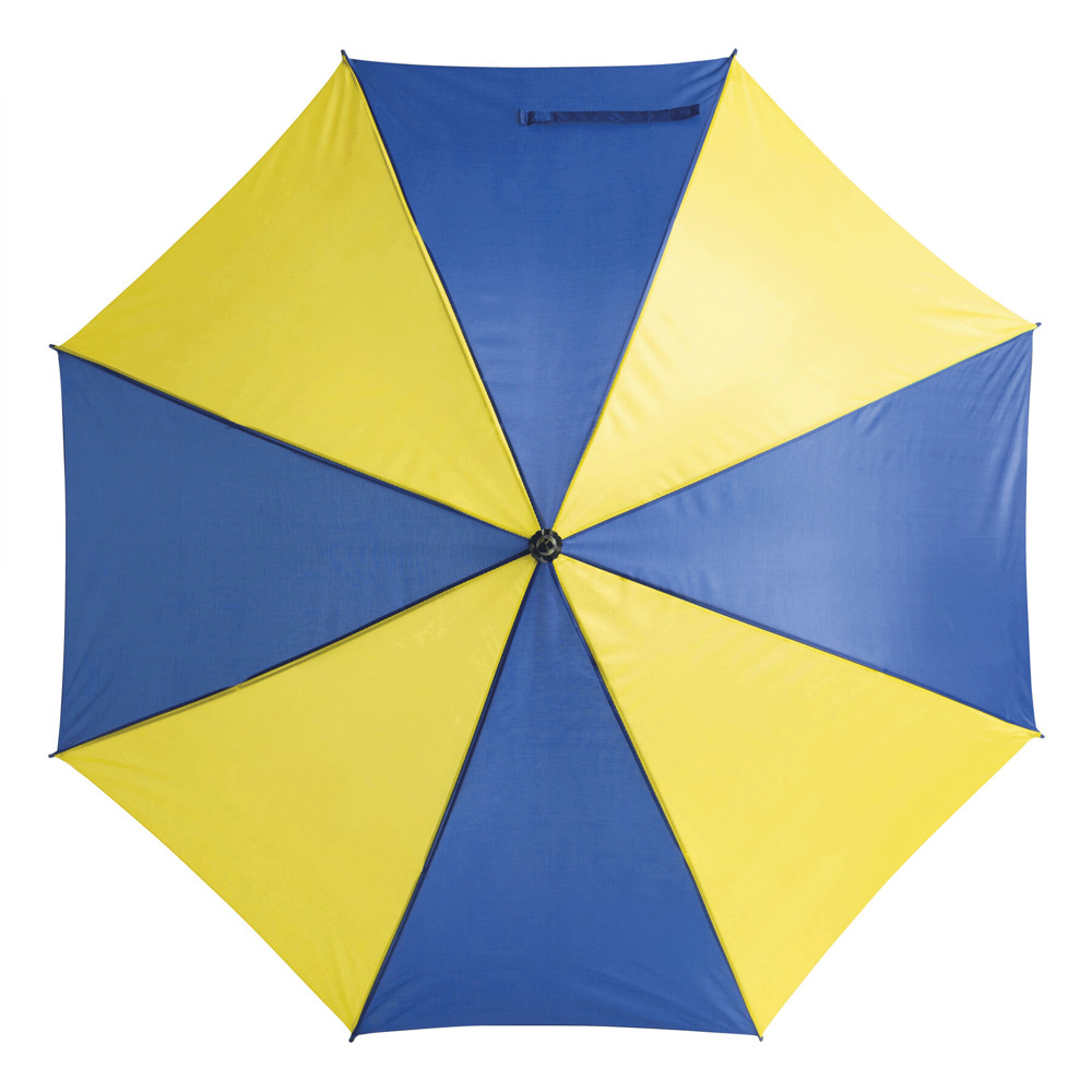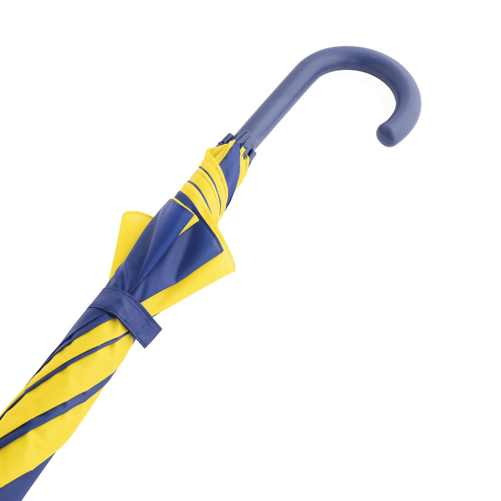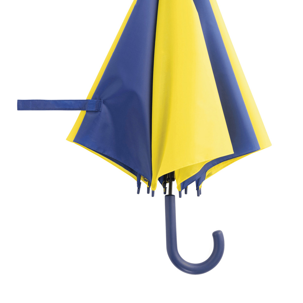 Automatic stick umbrella DISCO: with metal shaft, metal ribs, plastic tips with colour-matching plastic handle, polyester canopy, closing strap with touch fastener