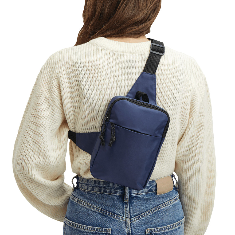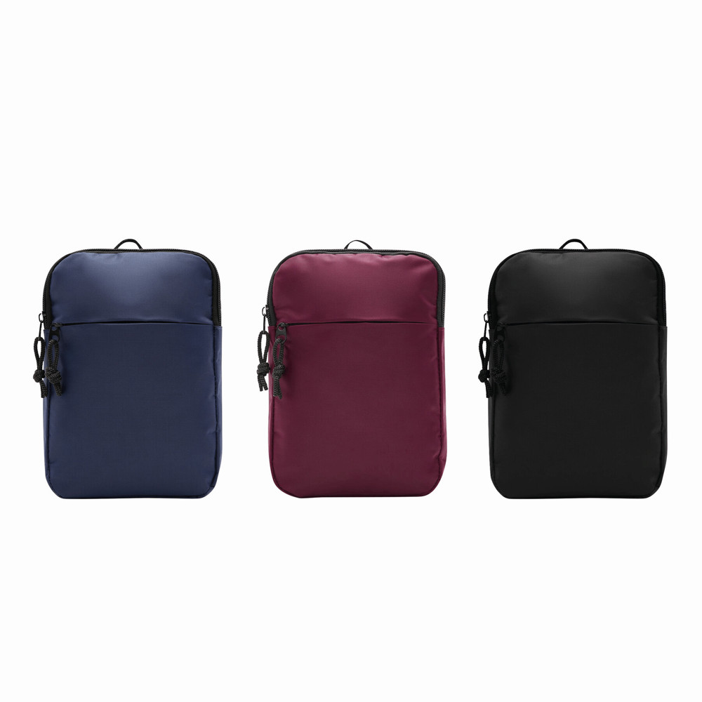 Shoulder bag NEAR BY: 1 main compartment with zip, 1 slip-in pocket on the inside, 1 front pocket with zip, 1 loop for hanging, adjustable shoulder strap with side-release buckle