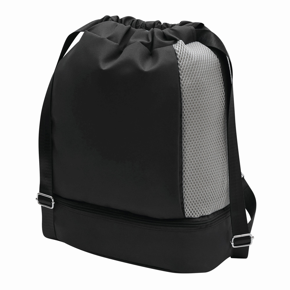 Backpack TRIP: with drawstring that serves as closure and shoulder straps (adjustable), 1 large main compartment with 1 zippered inner pocket and 2 slip-in pockets, 2 zippered vertical front pockets, 1 zippered compartment at the bottom