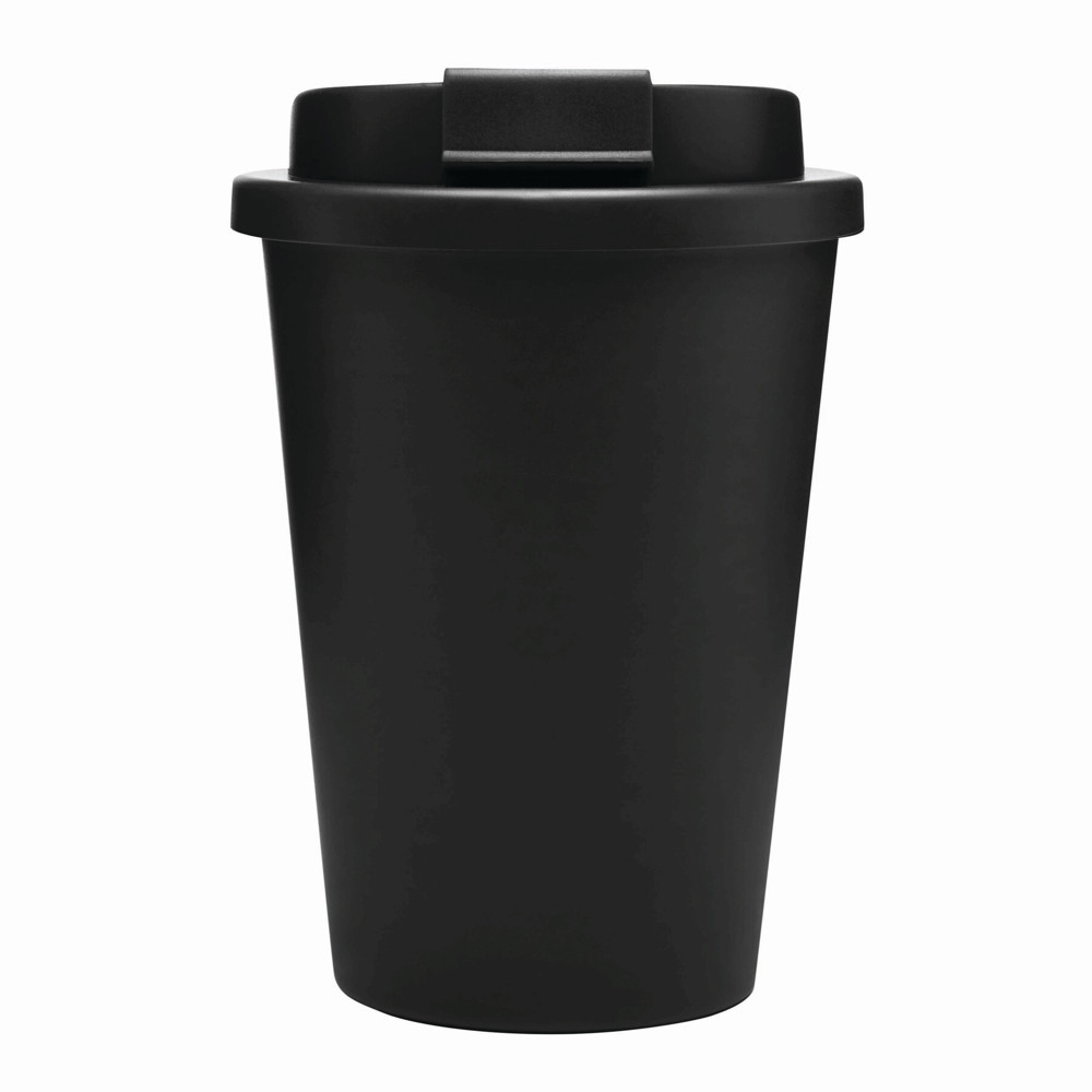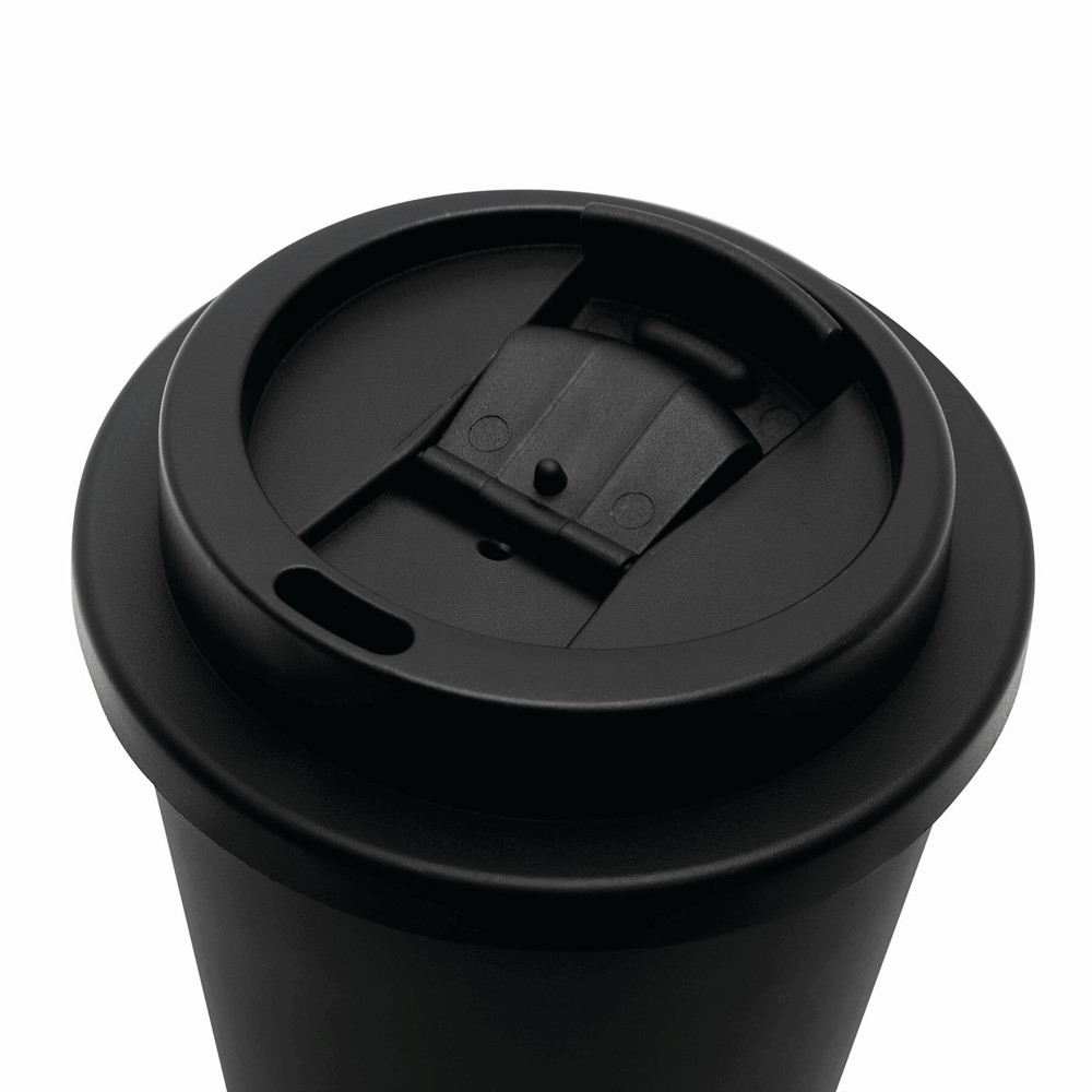Insulated cup RE-USE, double-walled: secure screw cap with silicone seal and integrated drinking opening that can be folded open, capacity approx. 300 ml, keeps warm for approx. 2 hours and cold for up to 4 hours