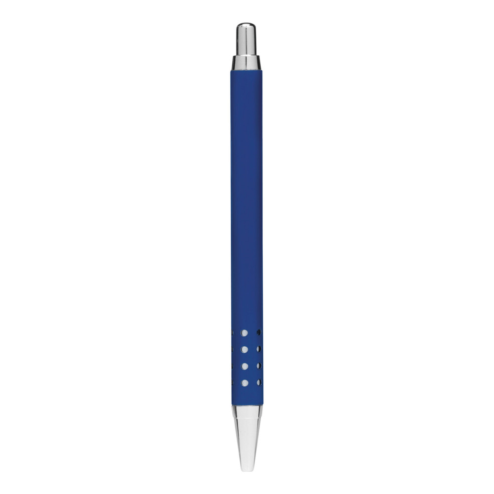Aluminium ballpoint pen BUKAREST: shaft with hole design, pressure mechanism, large refill, blue ink more