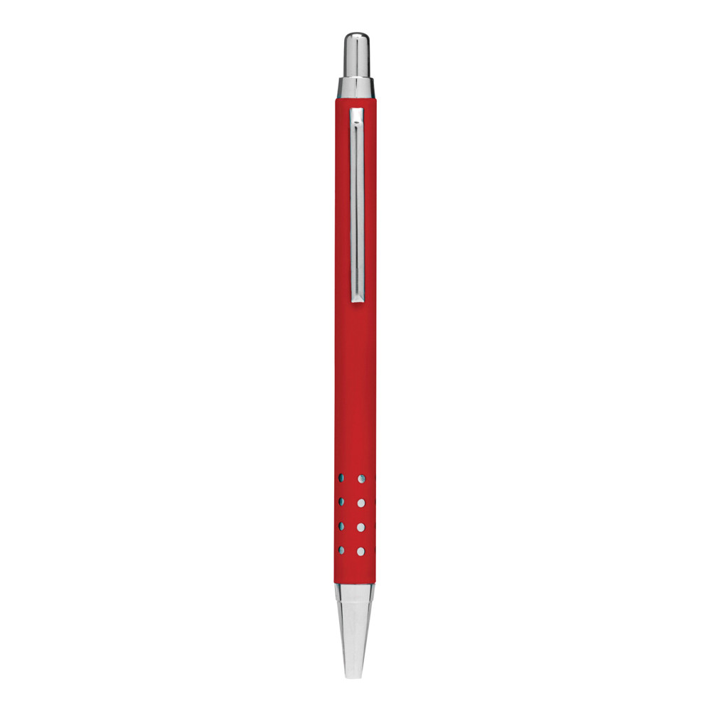 Aluminium ballpoint pen BUKAREST: shaft with hole design, pressure mechanism, large refill, blue ink more