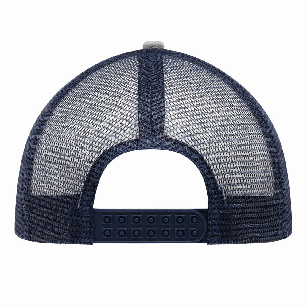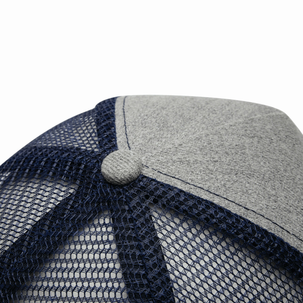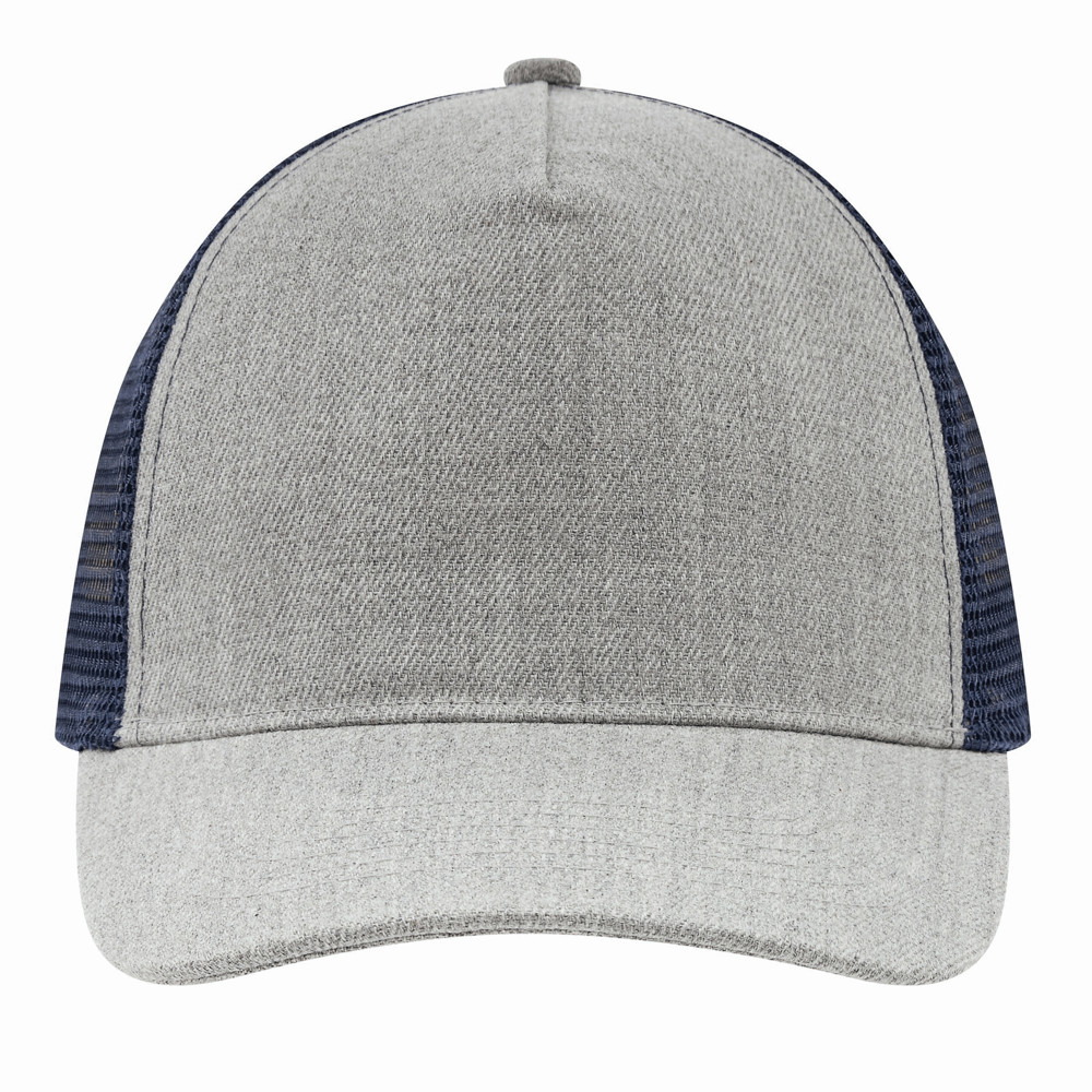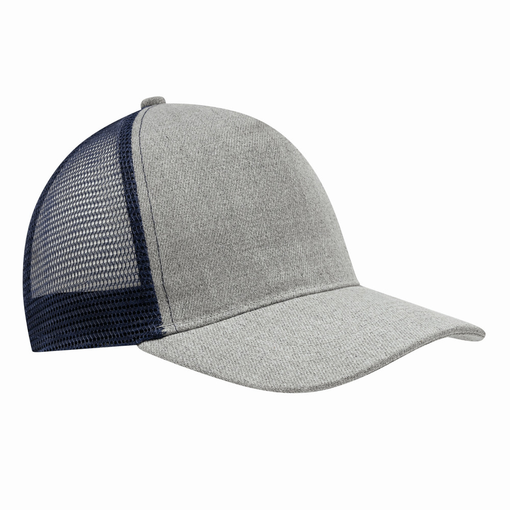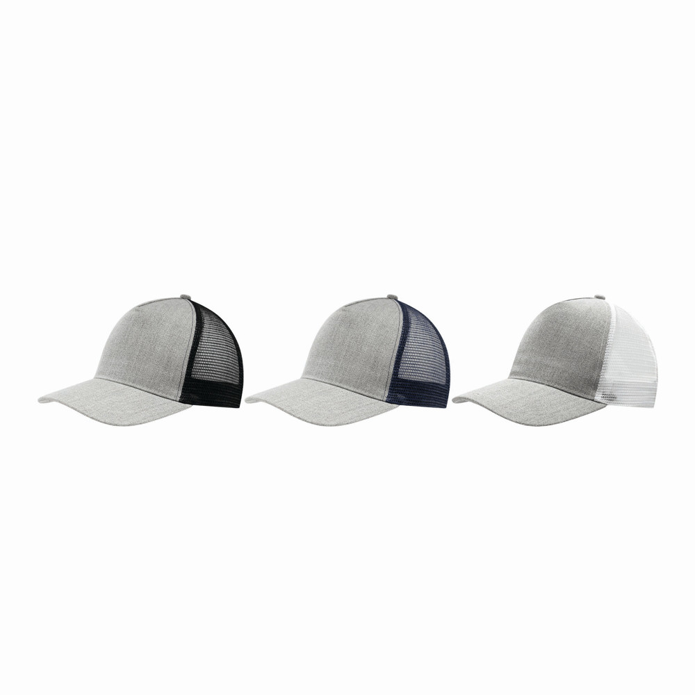 5-panel baseball cap CASUAL FIT, 2-coloured: reinforced front segment, other segments made of mesh, size-adjustable, double-row plastic fastener at the back