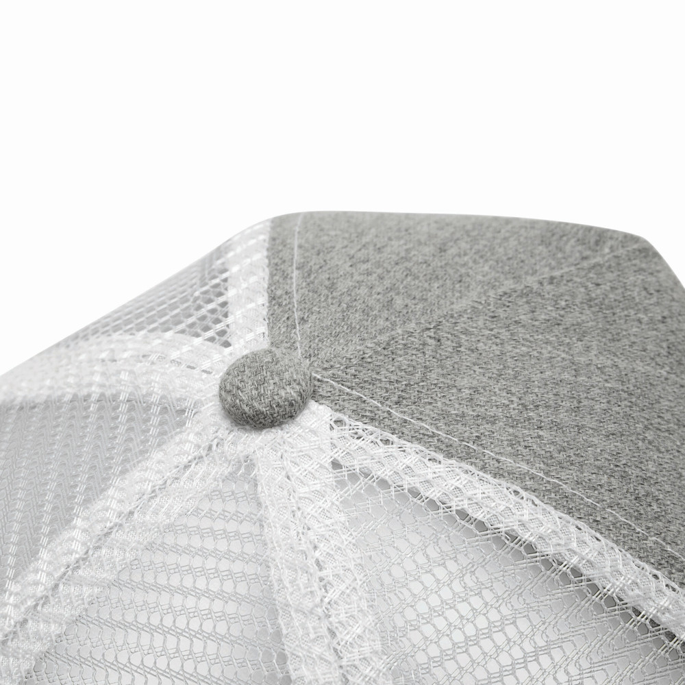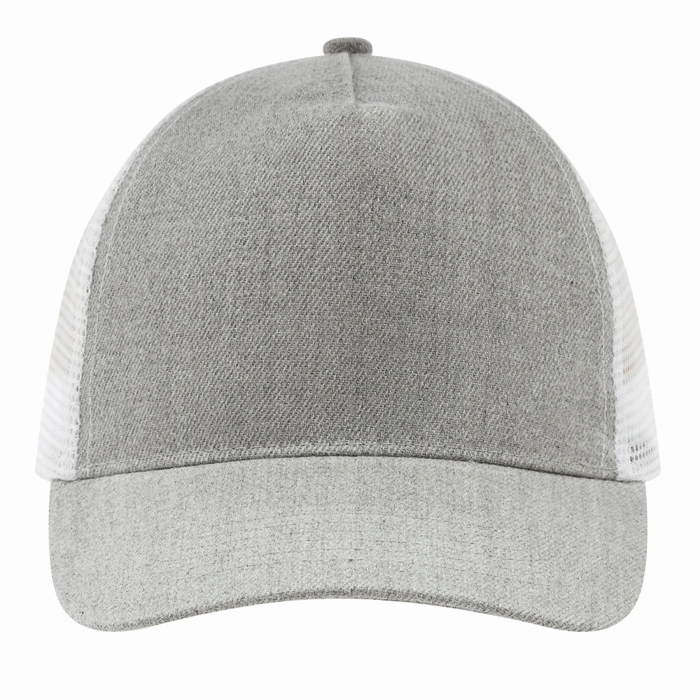 5-panel baseball cap CASUAL FIT, 2-coloured: reinforced front segment, other segments made of mesh, size-adjustable, double-row plastic fastener at the back