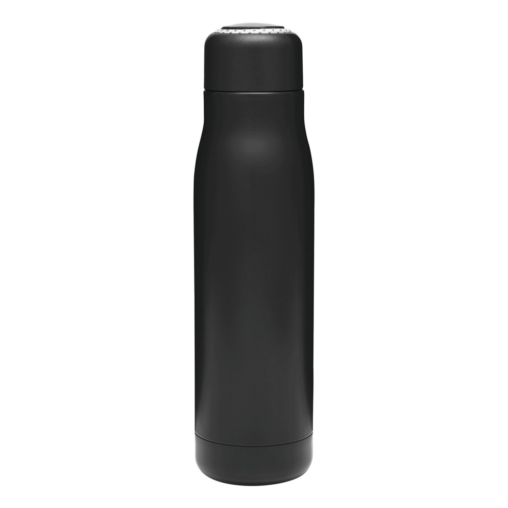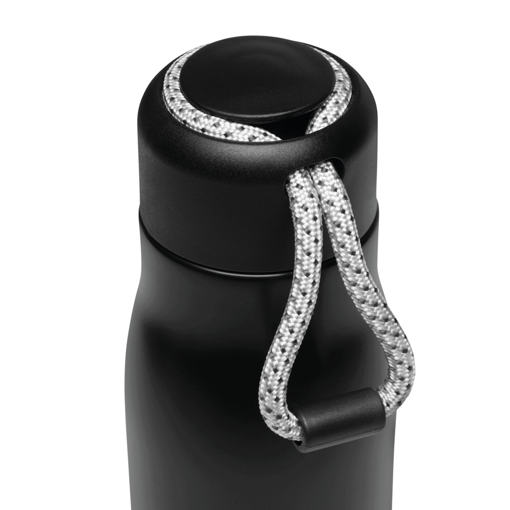 Insulated drinking bottle ROBUSTA, double-walled: inside and outside made of stainless steel, secure black screw cap with carrying loop, capacity: approx. 500 ml, keeps warm for approx. 8 hours and cold for up to 12 hours