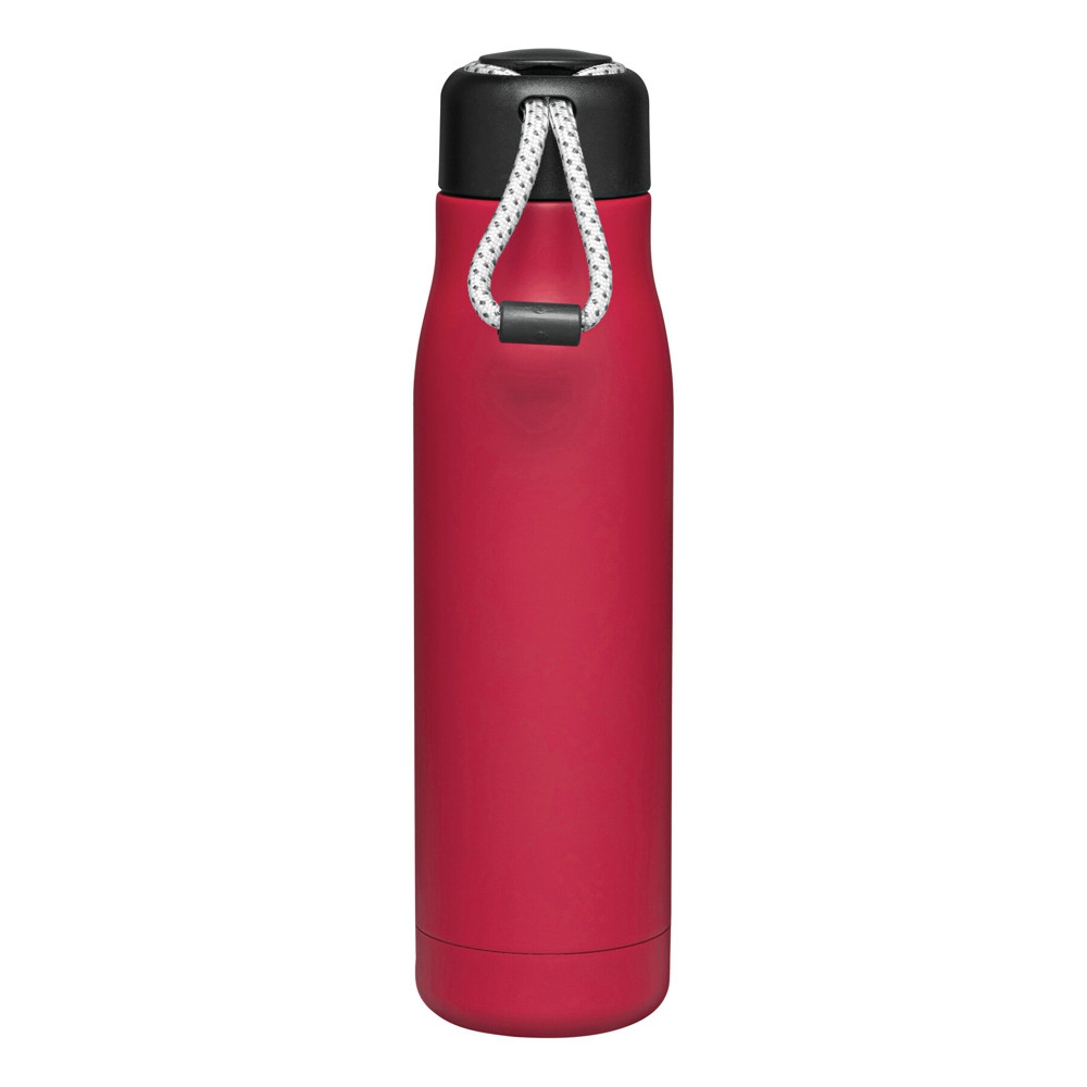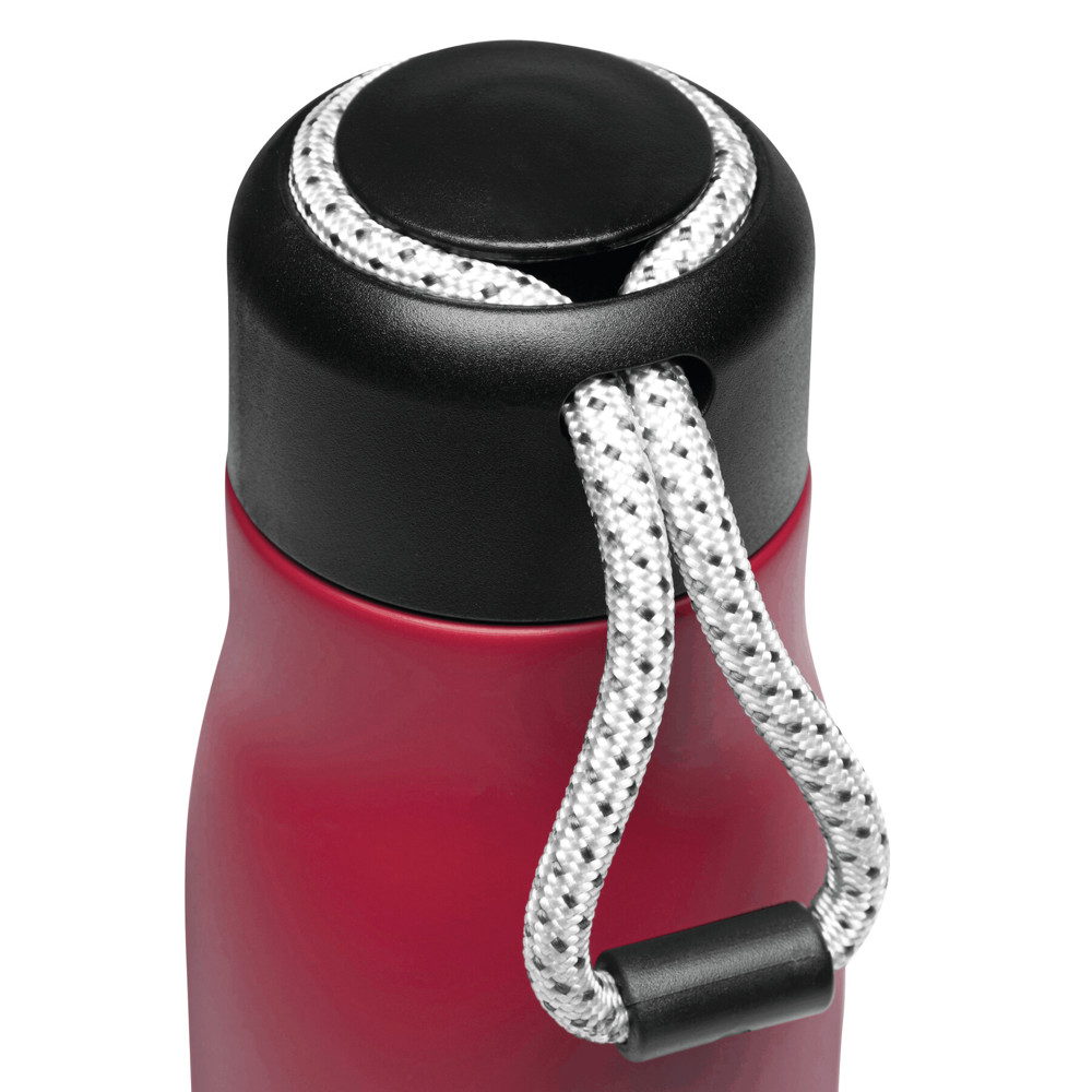 Insulated drinking bottle ROBUSTA, double-walled: inside and outside made of stainless steel, secure black screw cap with carrying loop, capacity: approx. 500 ml, keeps warm for approx. 8 hours and cold for up to 12 hours