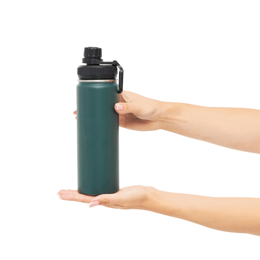 Insulated drinking bottle ARMY STYLE, double-walled: inside and outside made of stainless steel, secure black screw cap, capacity approx. 600 ml, keeps warm for approx. 8 hours and cold for up to 12 hours