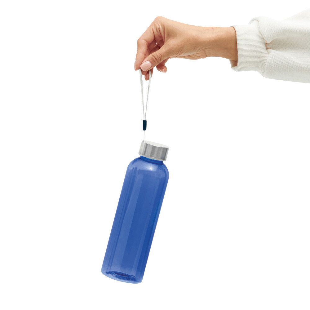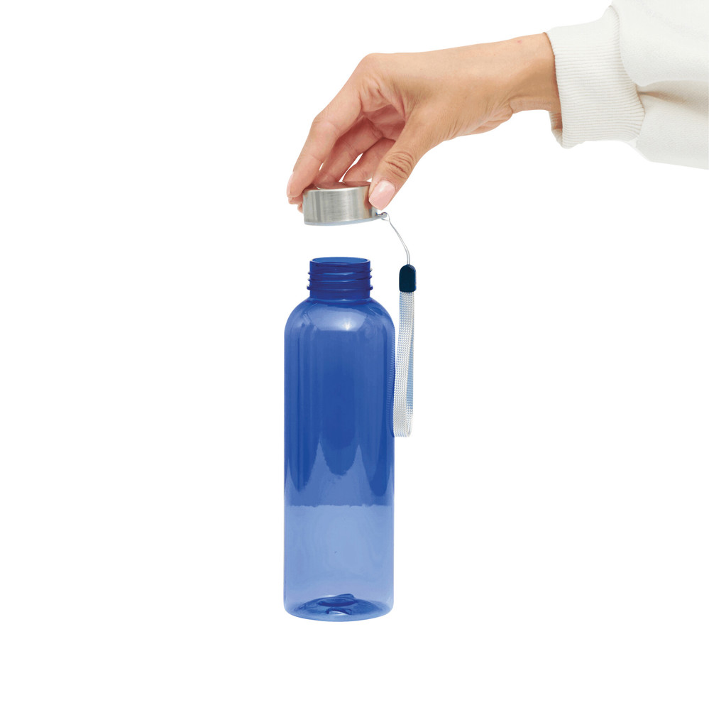 Drinking bottle SIMPLE ECO: made of rPET, stainless steel screw cap with carrying loop, capacity approx. 500 ml