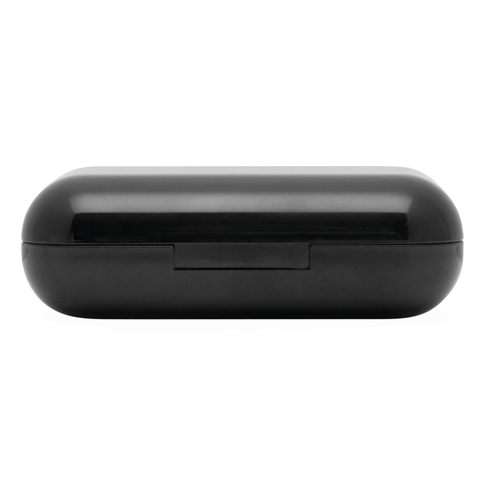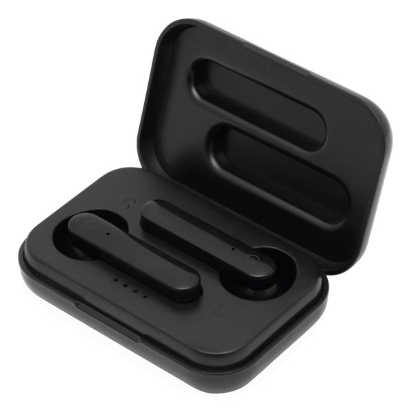 Wireless in-ear headphones TWINS: incl. speakerphone function, compatible with bluetooth, range: approx. 10 m, button for call acceptance and termination as well as track forward and back function, stereo and mono operation possible, incl. USB charging cable with Micro-USB connector (length approx. 20cm), blue charging control LED, storage box is charging station at the same time, capacity headphones: 30 mAh, charging station: 300 mAh