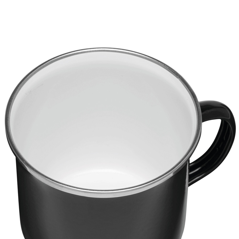 Enamel drinking cup VINTAGE CUP: made of stainless steel, with handle, coloured outside with a white interior, silver stainless steel rim, capacity approx. 350 ml