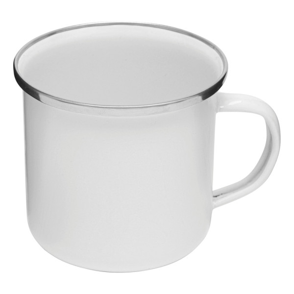 Enamel drinking cup VINTAGE CUP: made of stainless steel, with handle, coloured outside with a white interior, silver stainless steel rim, capacity approx. 350 ml