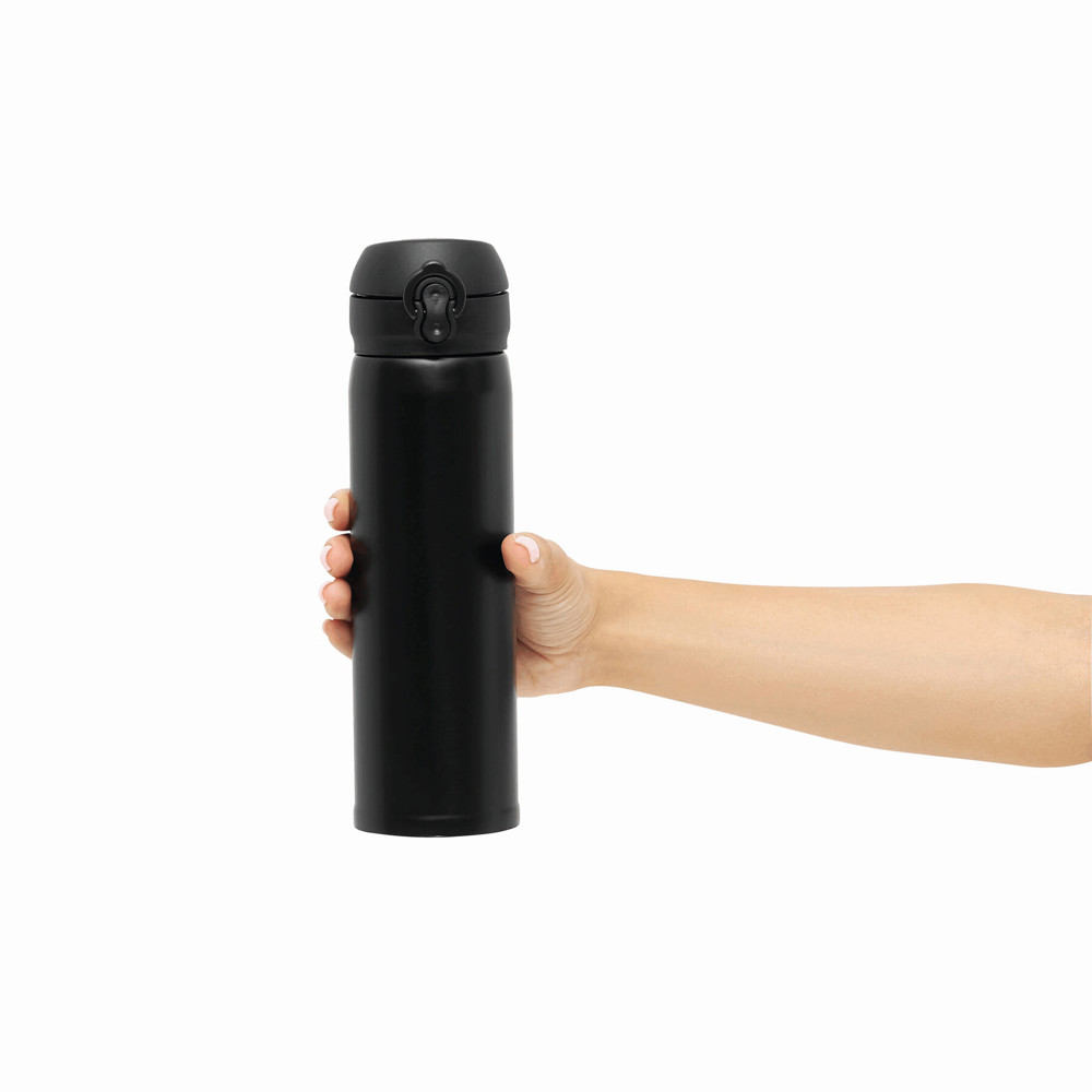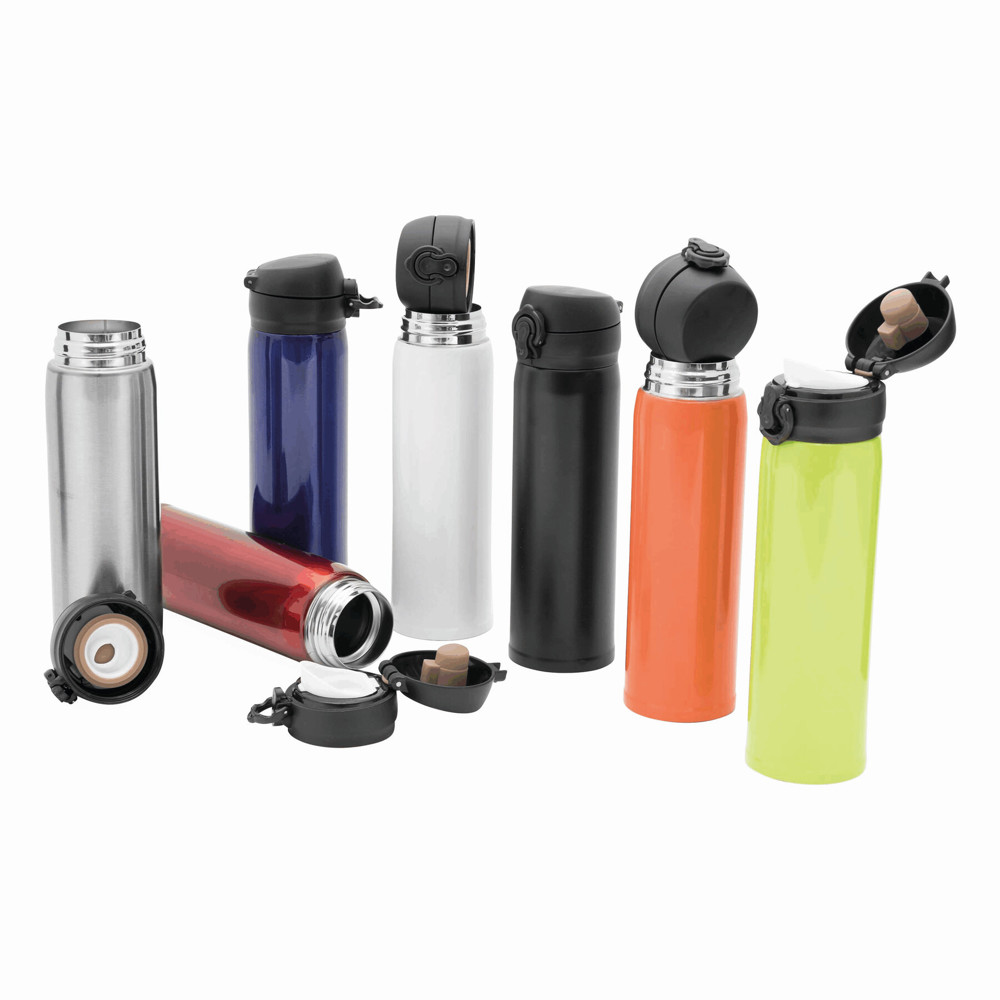 Vacuum flask OOLONG: double-walled, inside and outside made of stainless steel, with spout and screw cap, push button and secure lid, capacity approx. 400 ml