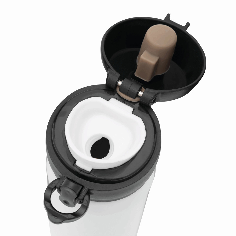 Vacuum flask OOLONG: double-walled, inside and outside made of stainless steel, with spout and screw cap, push button and secure lid, capacity approx. 400 ml