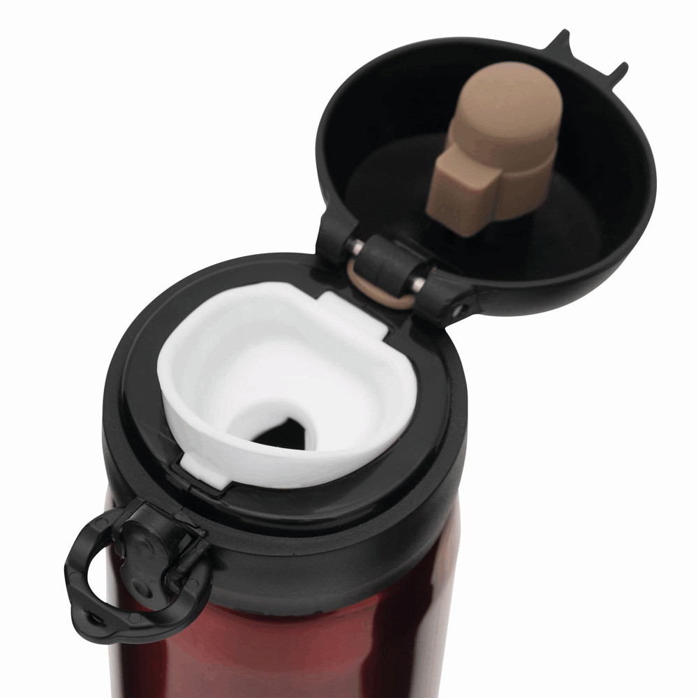Vacuum flask OOLONG: double-walled, inside and outside made of stainless steel, with spout and screw cap, push button and secure lid, capacity approx. 400 ml