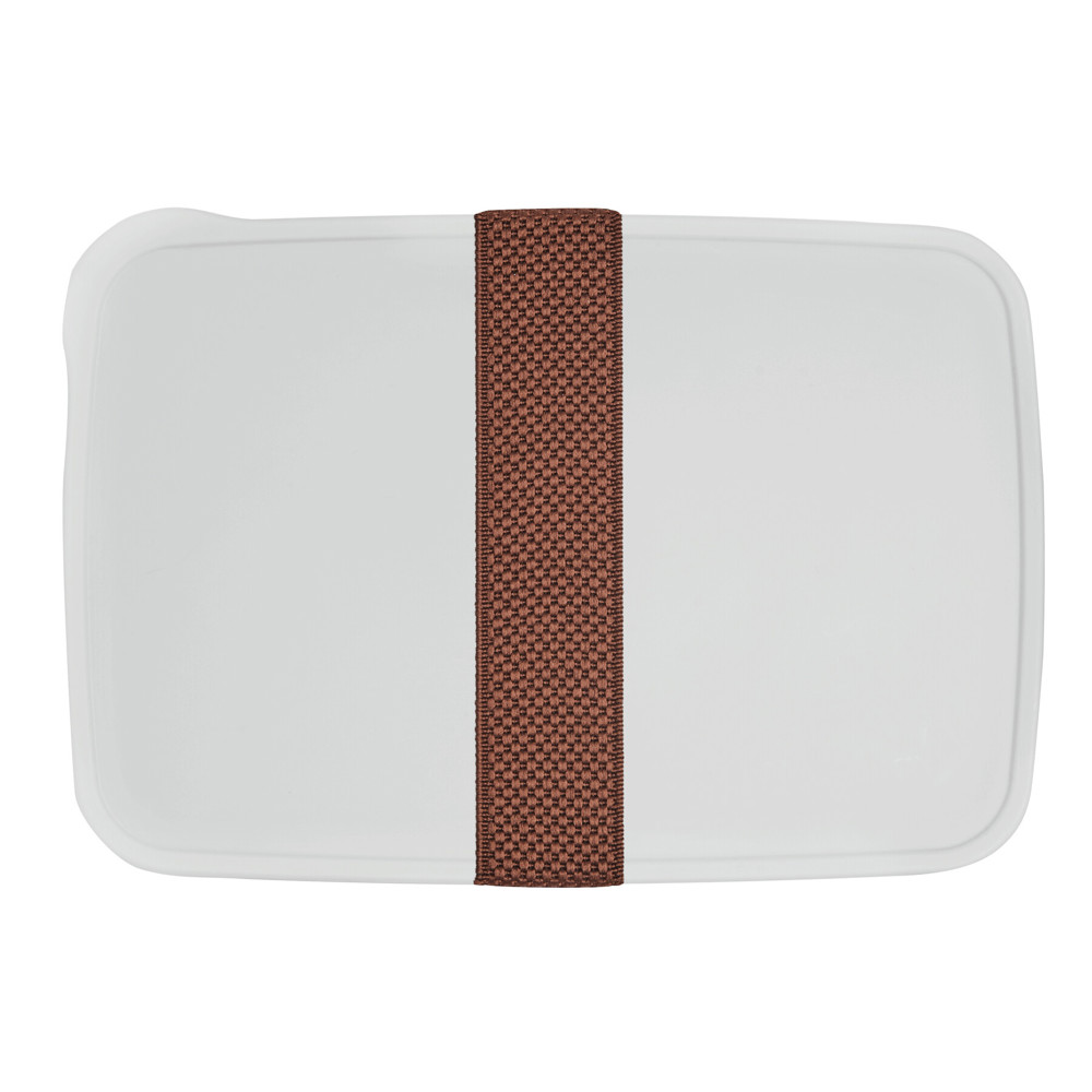 Lunch box NOONTIME: box with silicone-sealed lid, rubber band to keep the lid on tight, the band is designed to hold knife and fork, capacity approx. 700 ml, accessories (band + cutlery) delivered inside the box