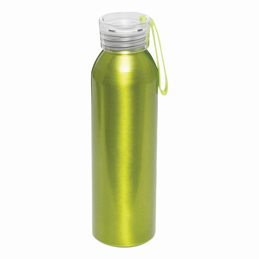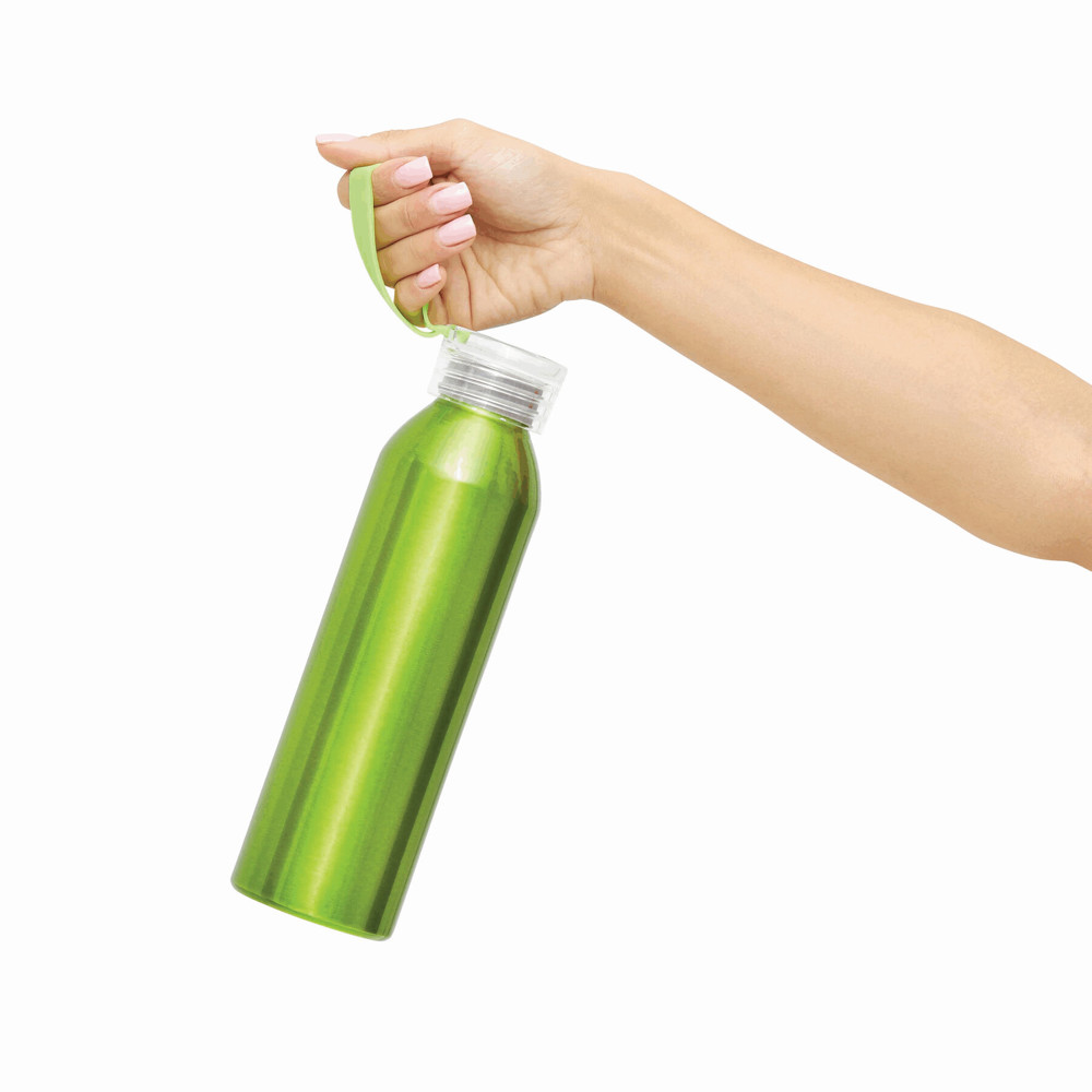 Aluminium drinking bottle LOOPED: transparent plastic screw cap, silicone loop, capacity approx. 650 ml
