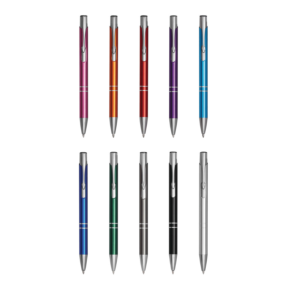 Aluminium ballpoint pen TUCSON: with a shiny metal shaft, pressure mechanism, large refill, blue ink