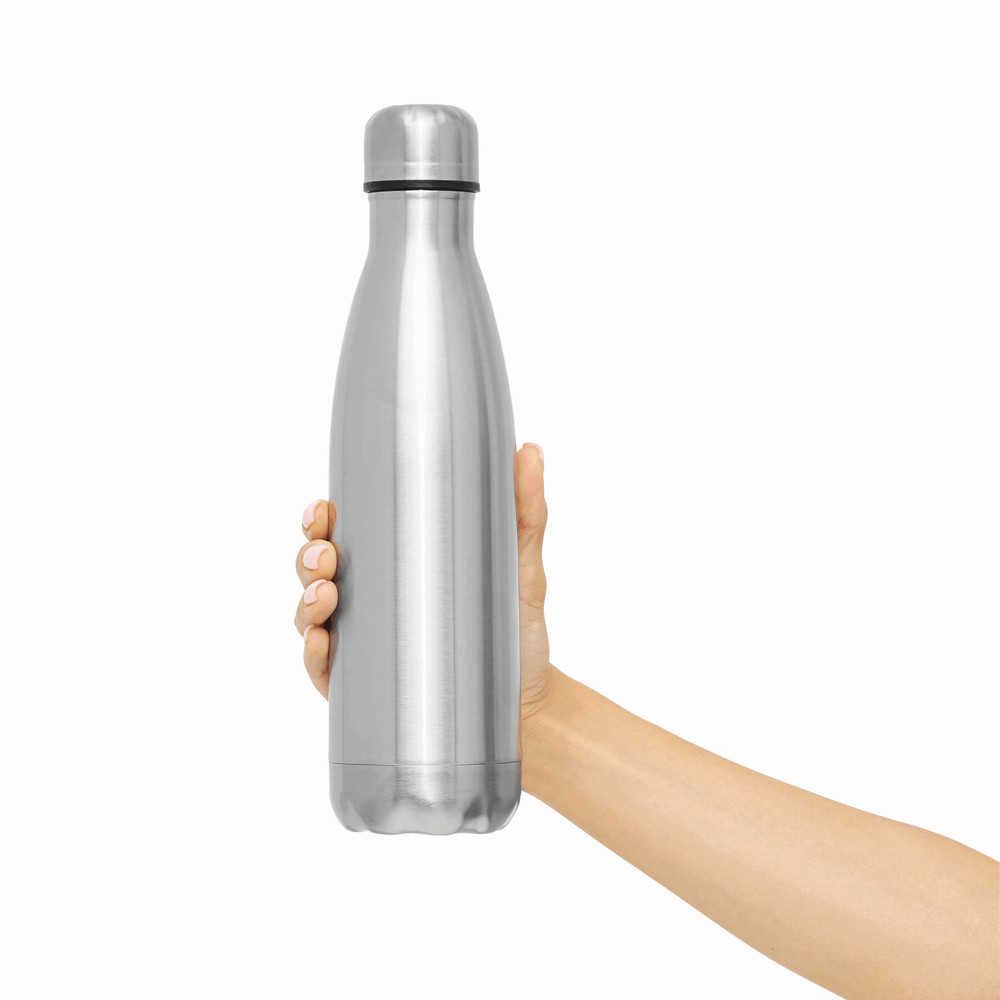 Double-walled vacuum bottle GOLDEN TASTE: inside and outside made of stainless steel, secure silver screw-on lid, capacity: approx. 500 ml
