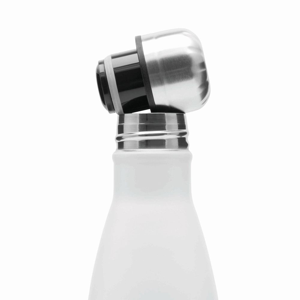 Double-walled vacuum bottle GOLDEN TASTE: inside and outside made of stainless steel, secure silver screw-on lid, capacity: approx. 500 ml
