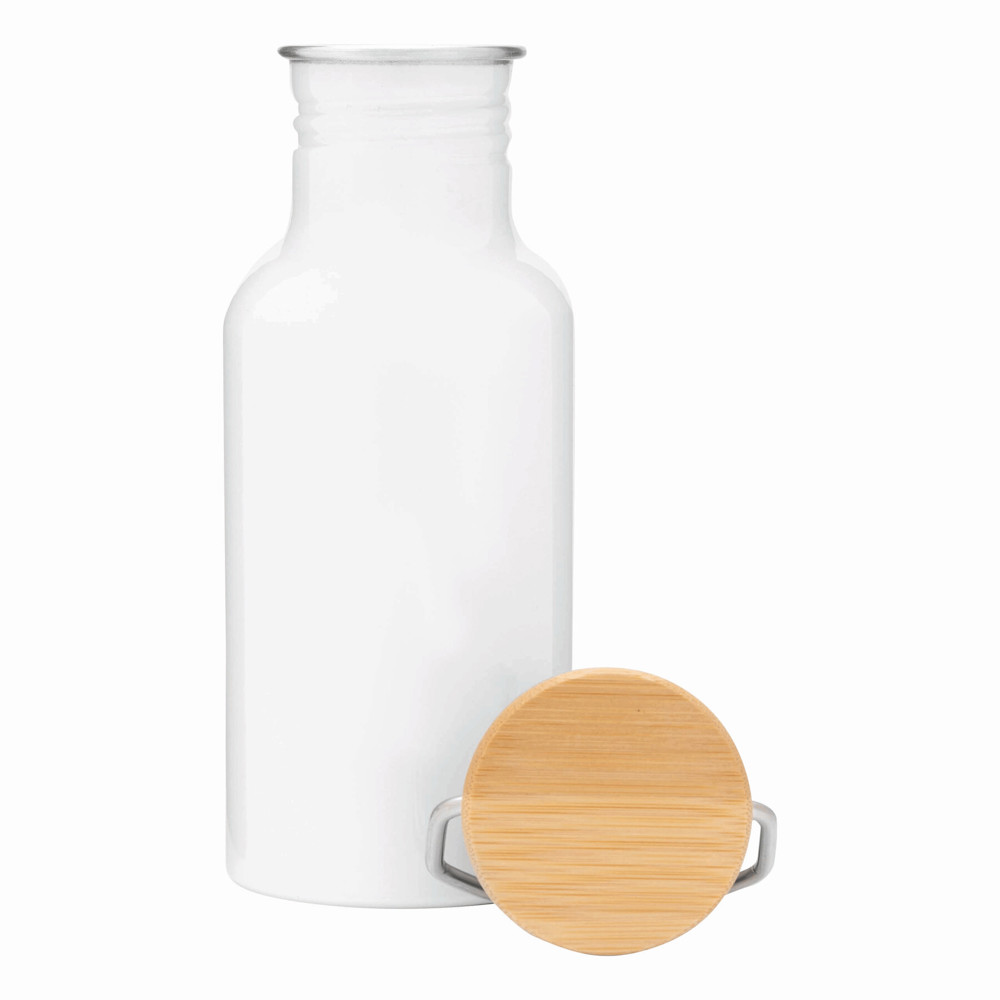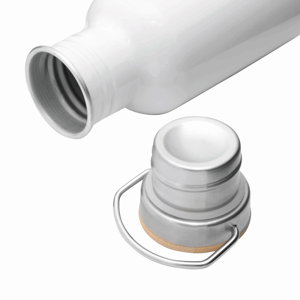 Aluminium bottle ECO TRANSIT: single-walled, bamboo lid with secure screw cap and carrying handle, capacity: approx. 550 ml