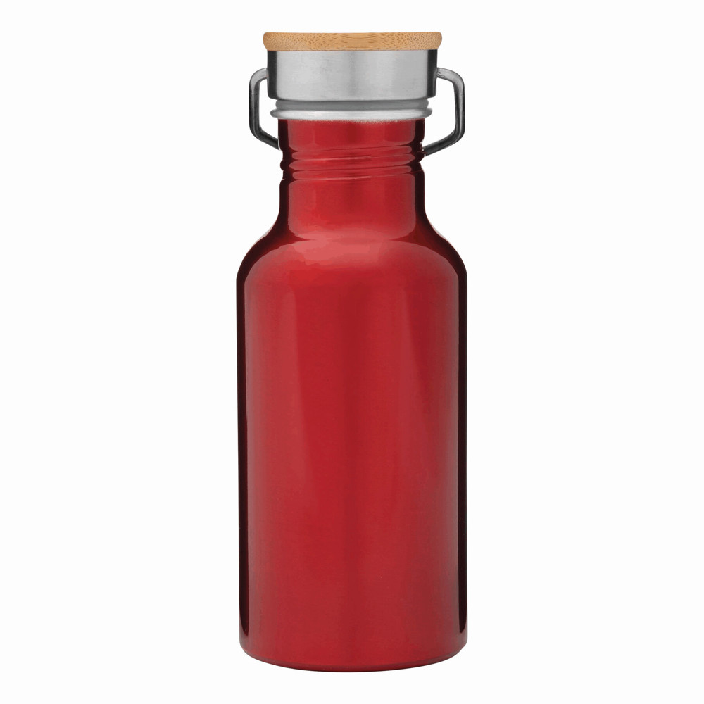 Aluminium bottle ECO TRANSIT: single-walled, bamboo lid with secure screw cap and carrying handle, capacity: approx. 550 ml