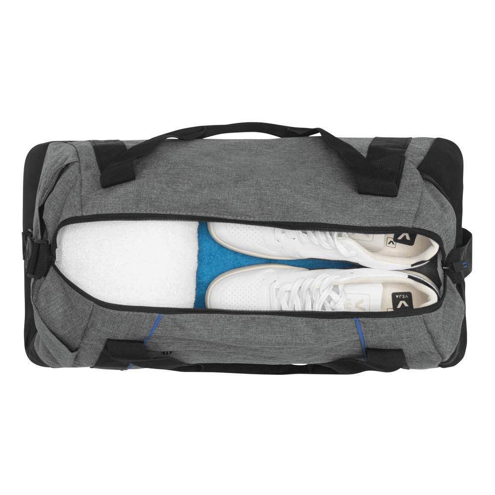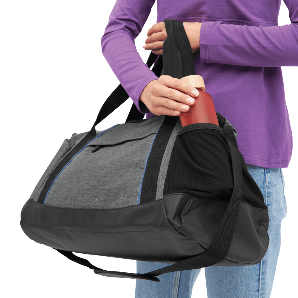 Sports bag SPLIT GYM: spacious main compartment and interior pocket with zip, front pocket with zip, mesh pocket on one side, slip-in pocket on the other side, adjustable shoulder strap with shoulder pad