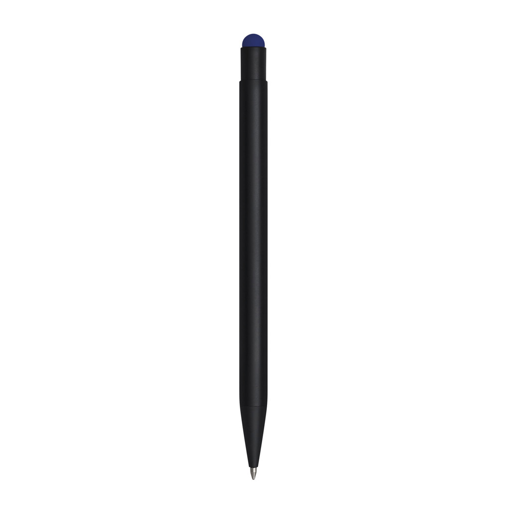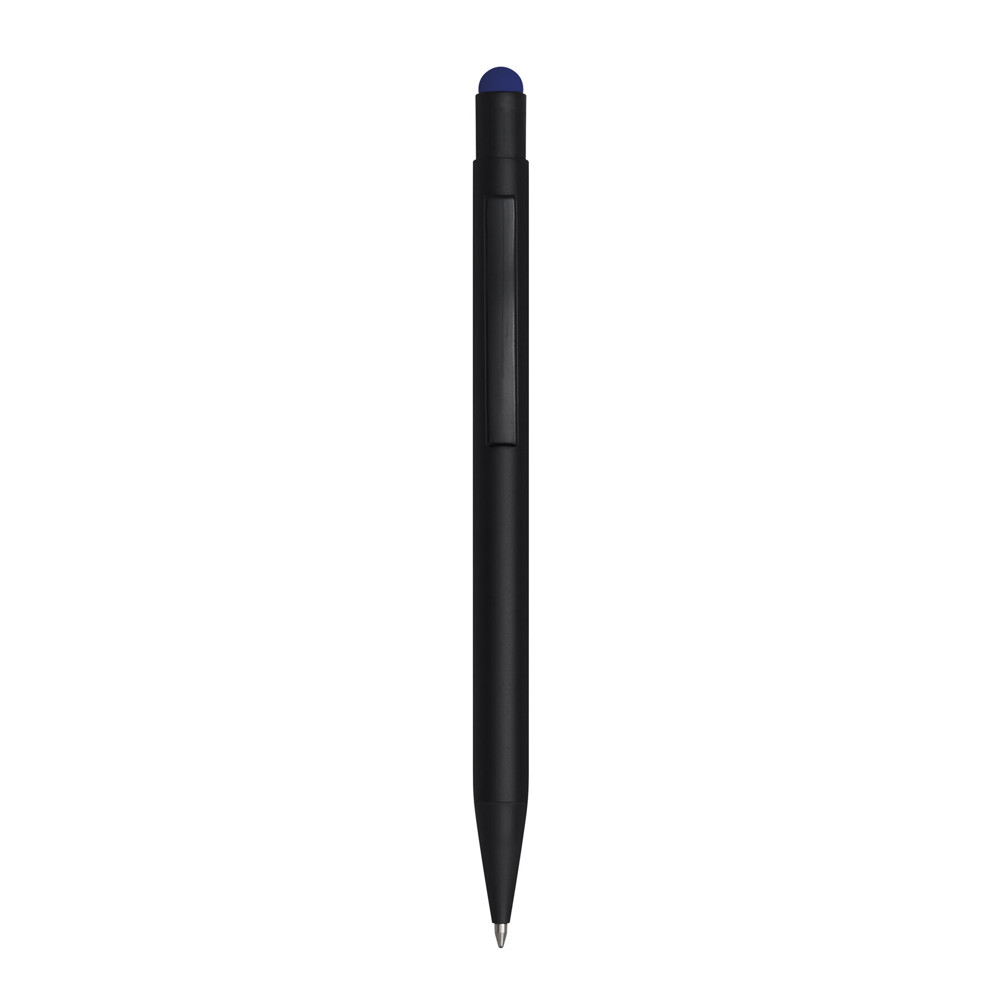 Aluminium ballpoint pen BLACK BEAUTY, with a large refill, touchscreen tip for smartphones and tablets, matt surface with coloured base for engraving matching the colour of the touchscreen tip, blue ink