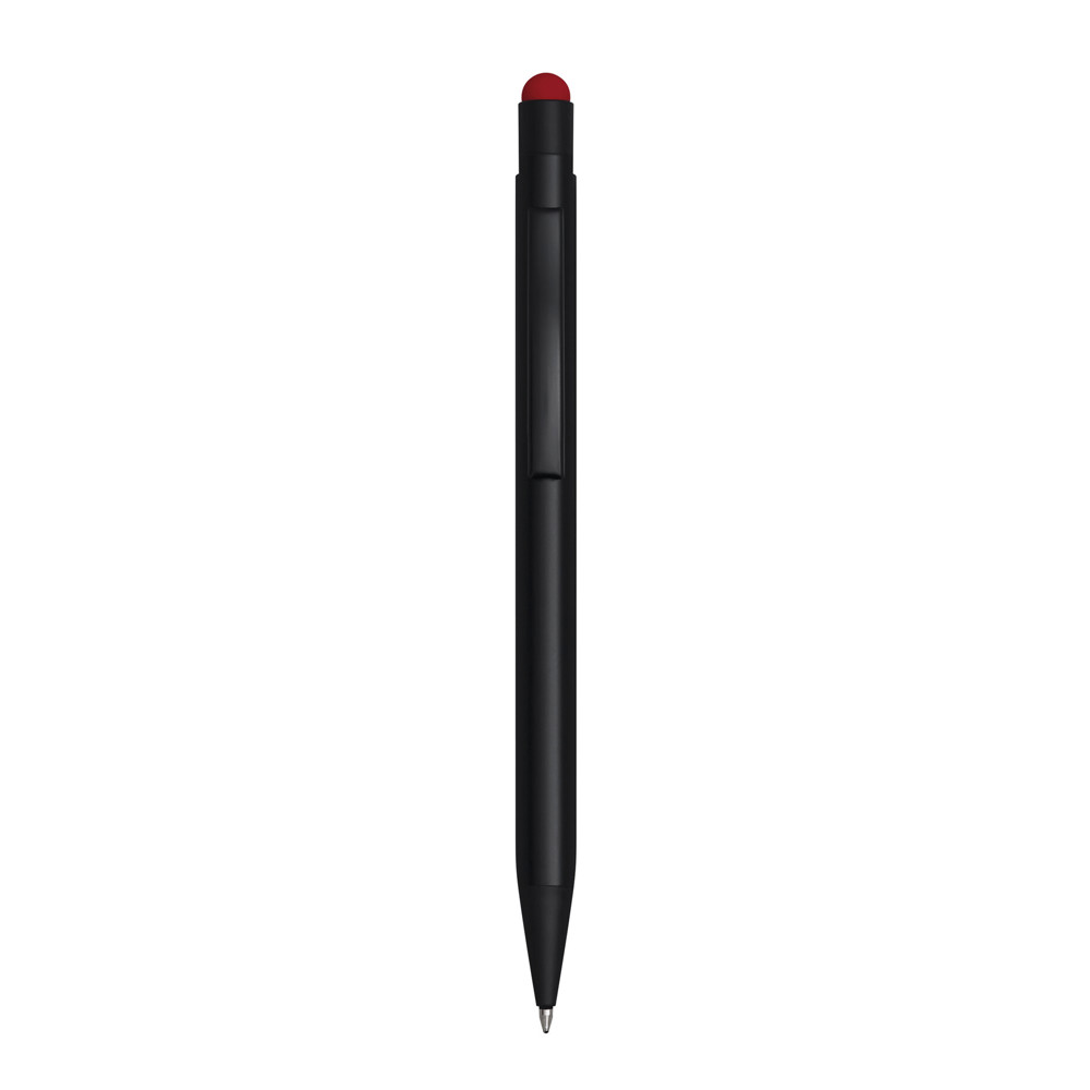 Aluminium ballpoint pen BLACK BEAUTY, with a large refill, touchscreen tip for smartphones and tablets, matt surface with coloured base for engraving matching the colour of the touchscreen tip, blue ink