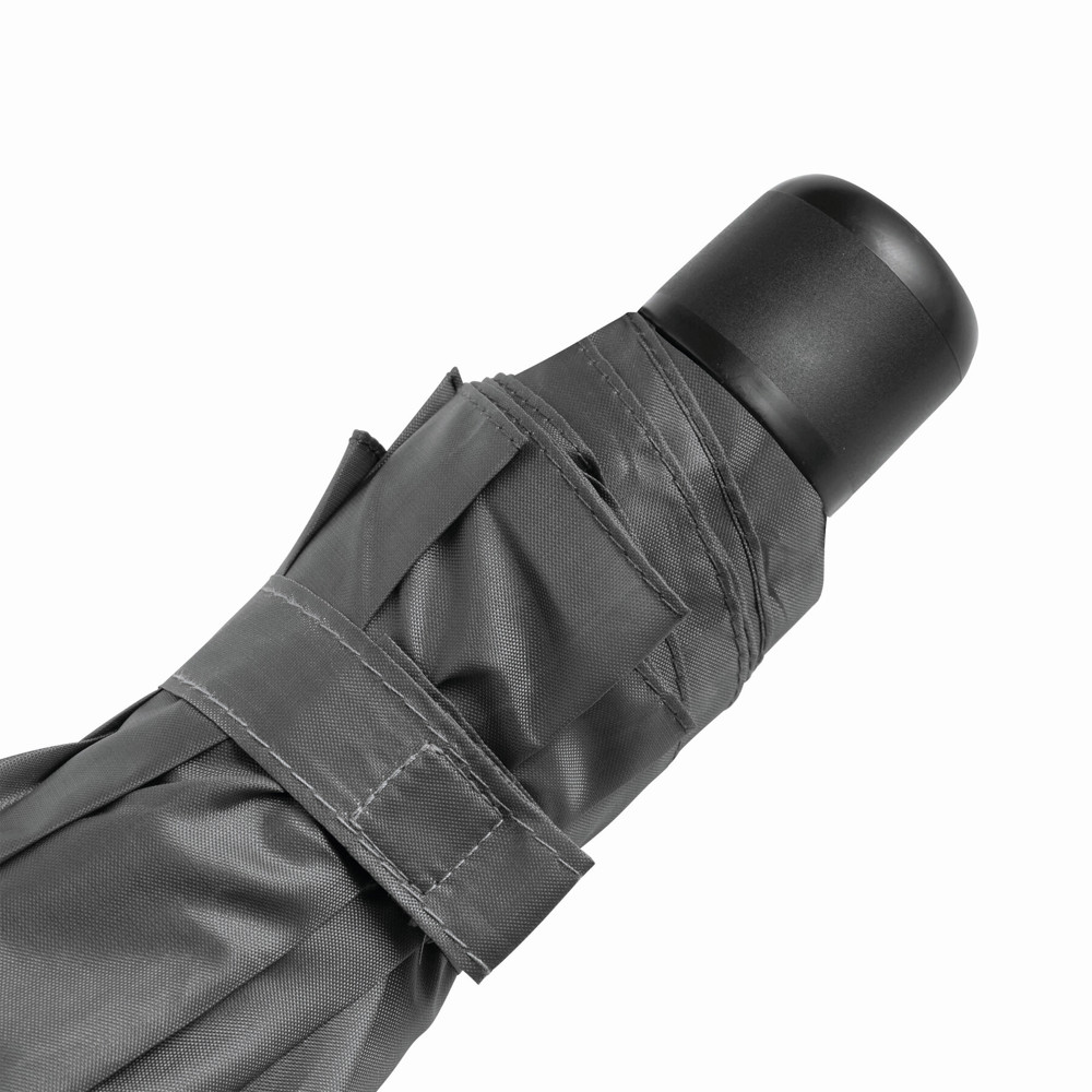 Pocket umbrella PICOBELLO with a 3-piece metal shaft, metal/fibreglass ribs, metal tips, black plastic handle, and a polyester canopy, closure with Velcro