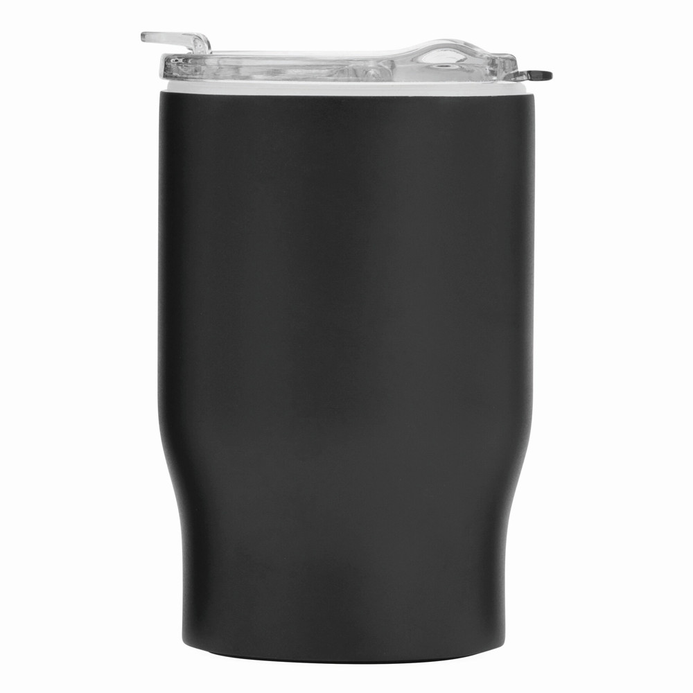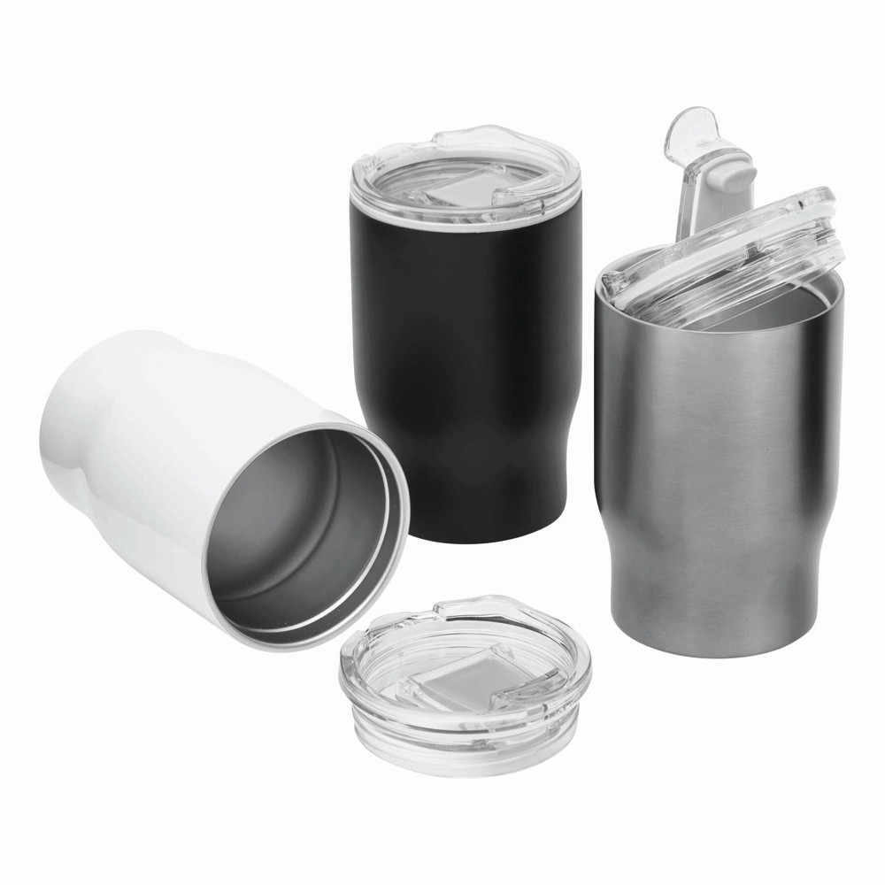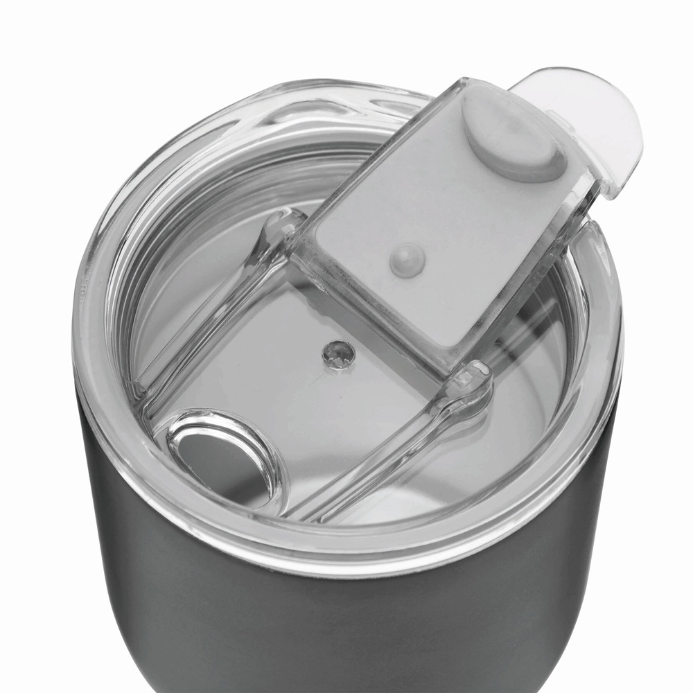 Travel mug BEST FLAVOUR, double-walled: inside and outside made of stainless steel, transparent secure screw-on plastic lid and integrated fold-out drinking opening, capacity approx. 350 ml