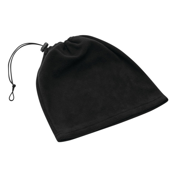 Fleece scarf-hat VARIOUS: in 2 styles to wear – scarf can be turned into a hat by pulling the elastic string with stopper