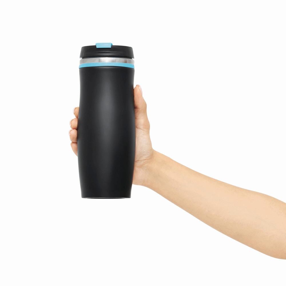 Double-walled travel mug DARK CREMA: inside and outside made of stainless steel, plastic lid with... more