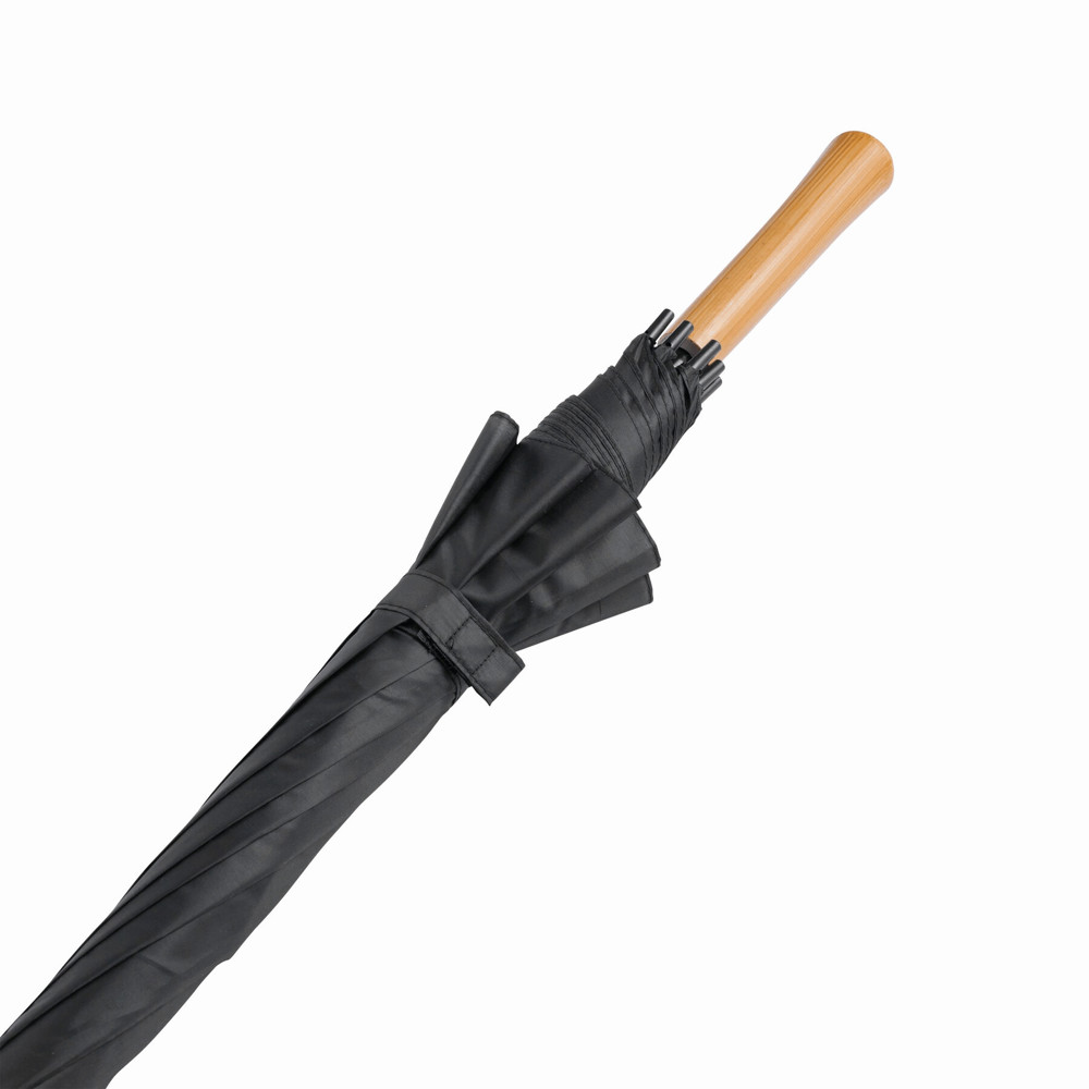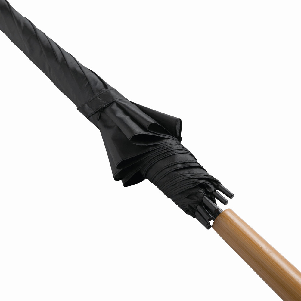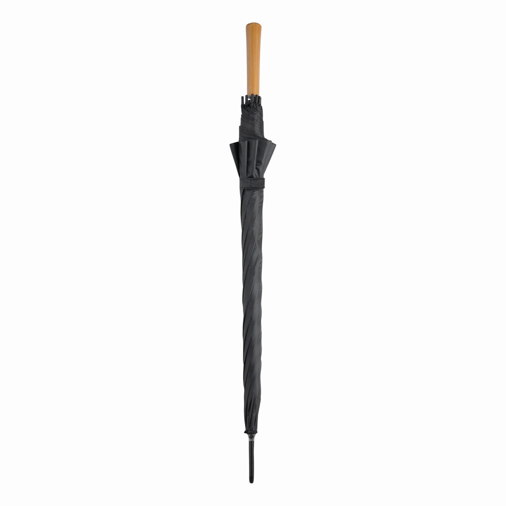 Automatic stick umbrella LIMBO: metal shaft and ribs, colour-matching plastic tips, handle with wooden appearance, polyester canopy, closure with Velcro