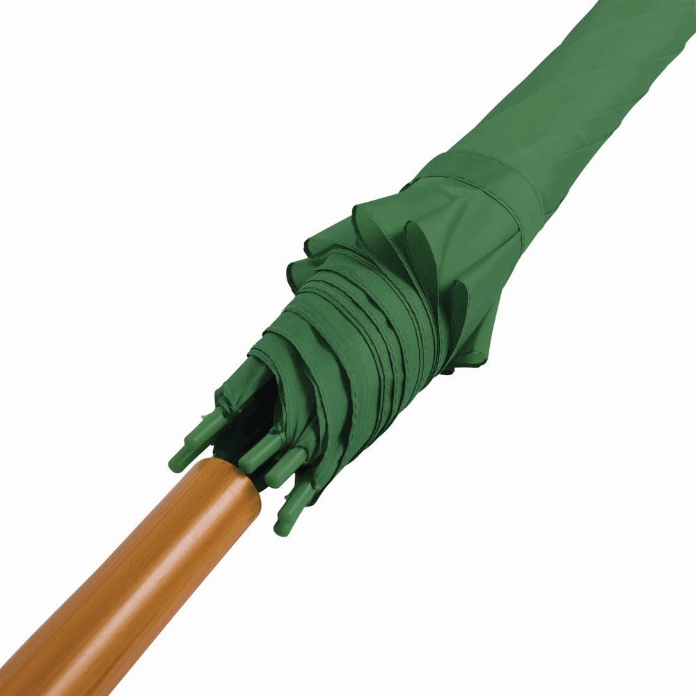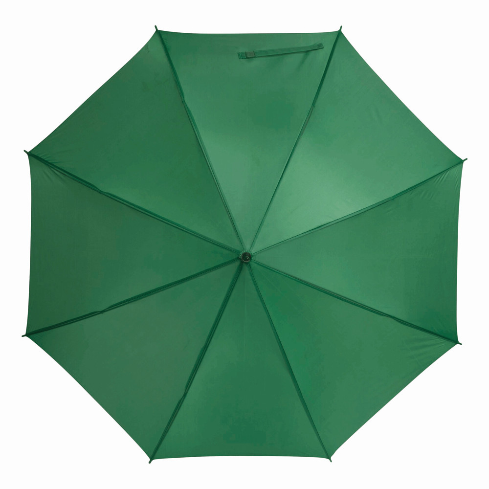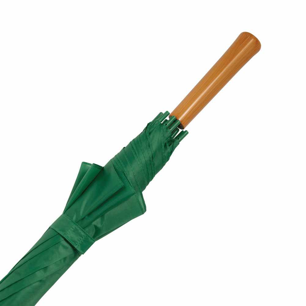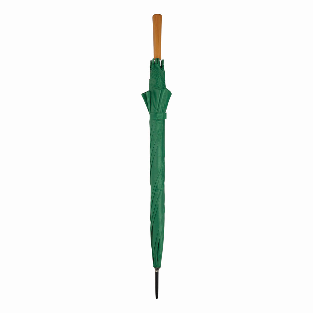 Automatic stick umbrella LIMBO: metal shaft and ribs, colour-matching plastic tips, handle with wooden appearance, polyester canopy, closure with Velcro