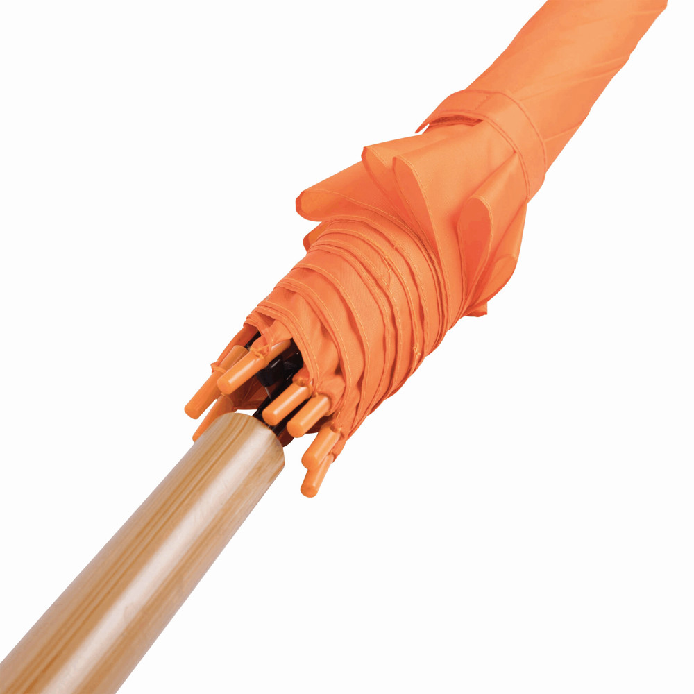 Automatic stick umbrella LIMBO: metal shaft and ribs, colour-matching plastic tips, handle with wooden appearance, polyester canopy, closure with Velcro