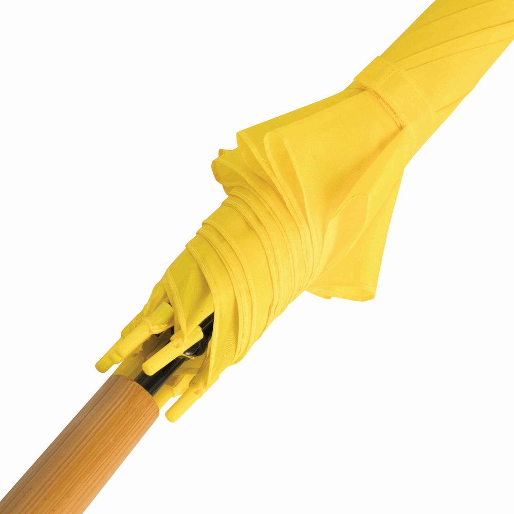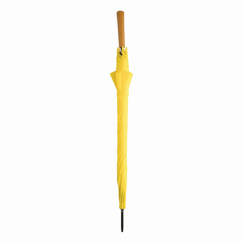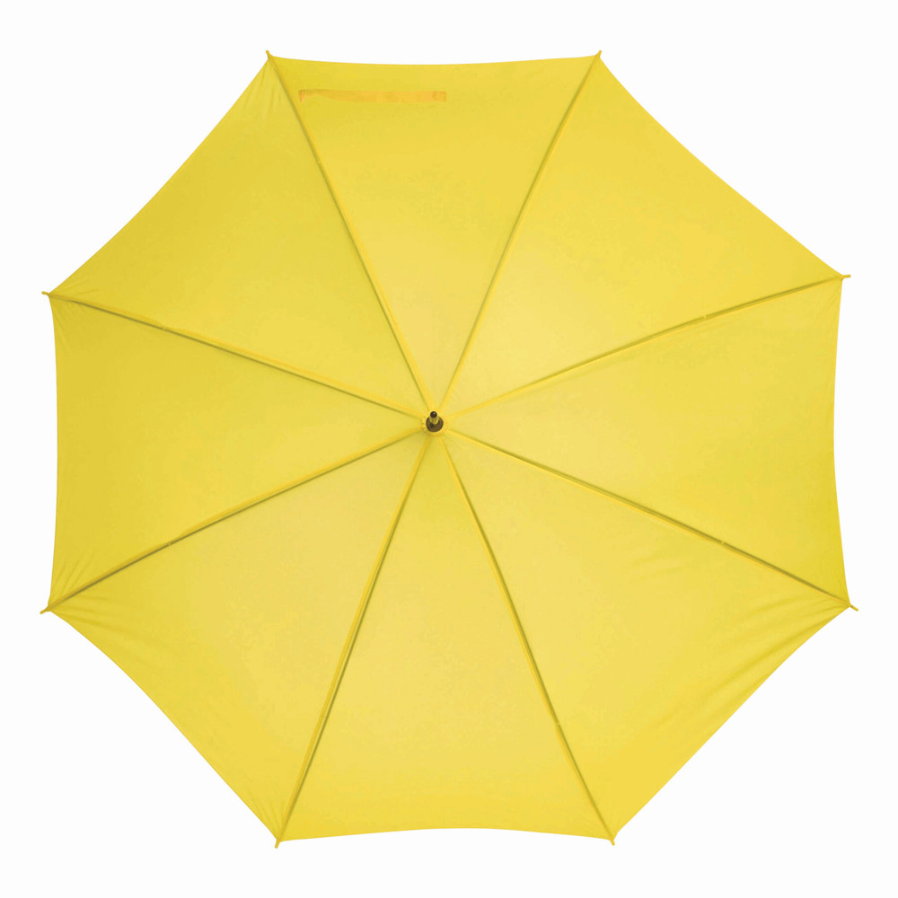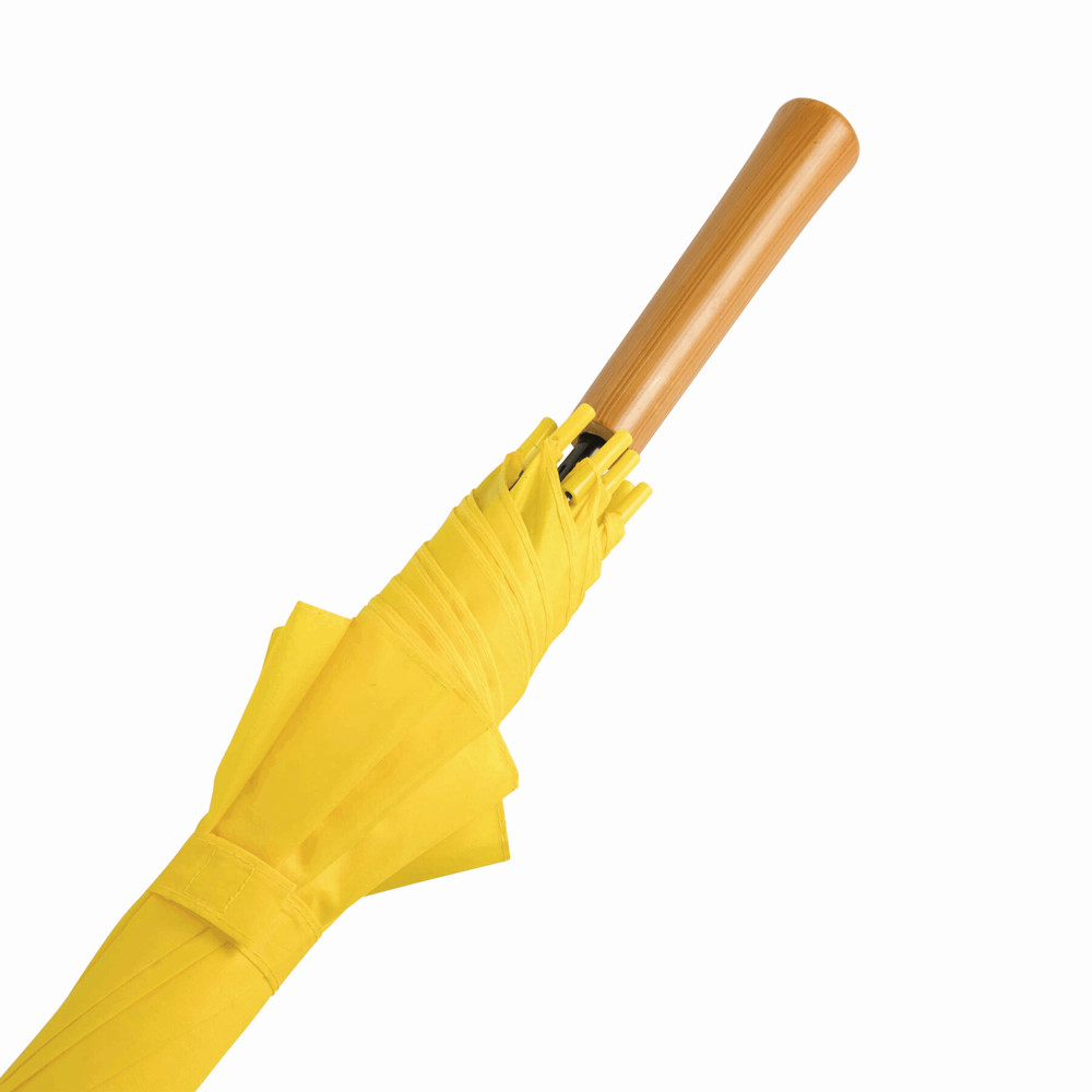 Automatic stick umbrella LIMBO: metal shaft and ribs, colour-matching plastic tips, handle with wooden appearance, polyester canopy, closure with Velcro