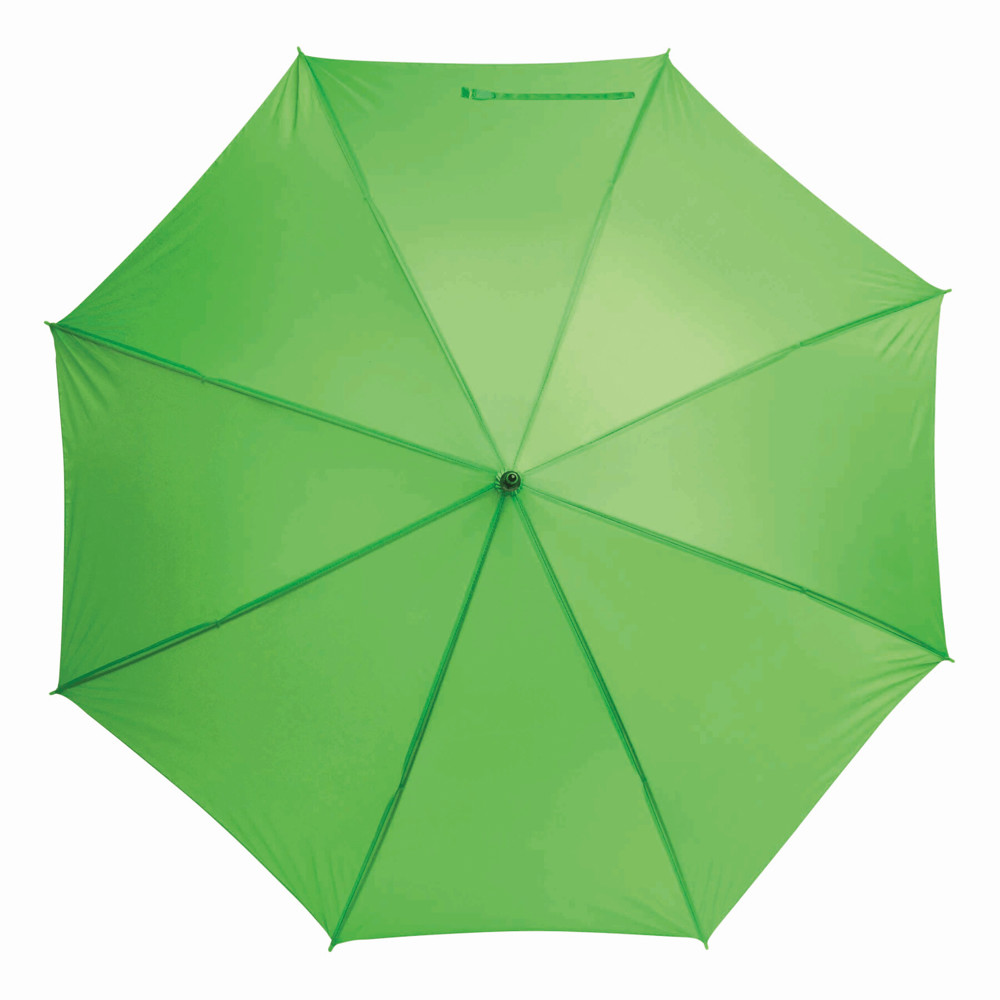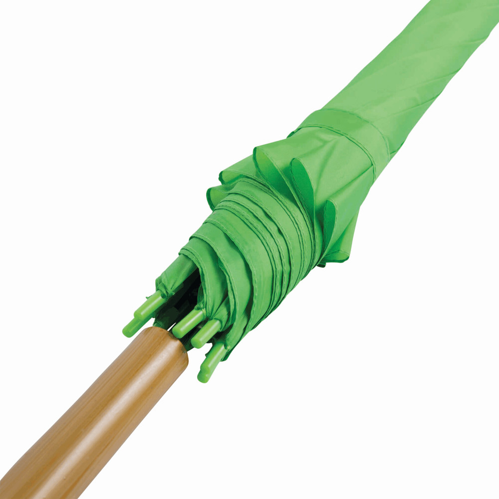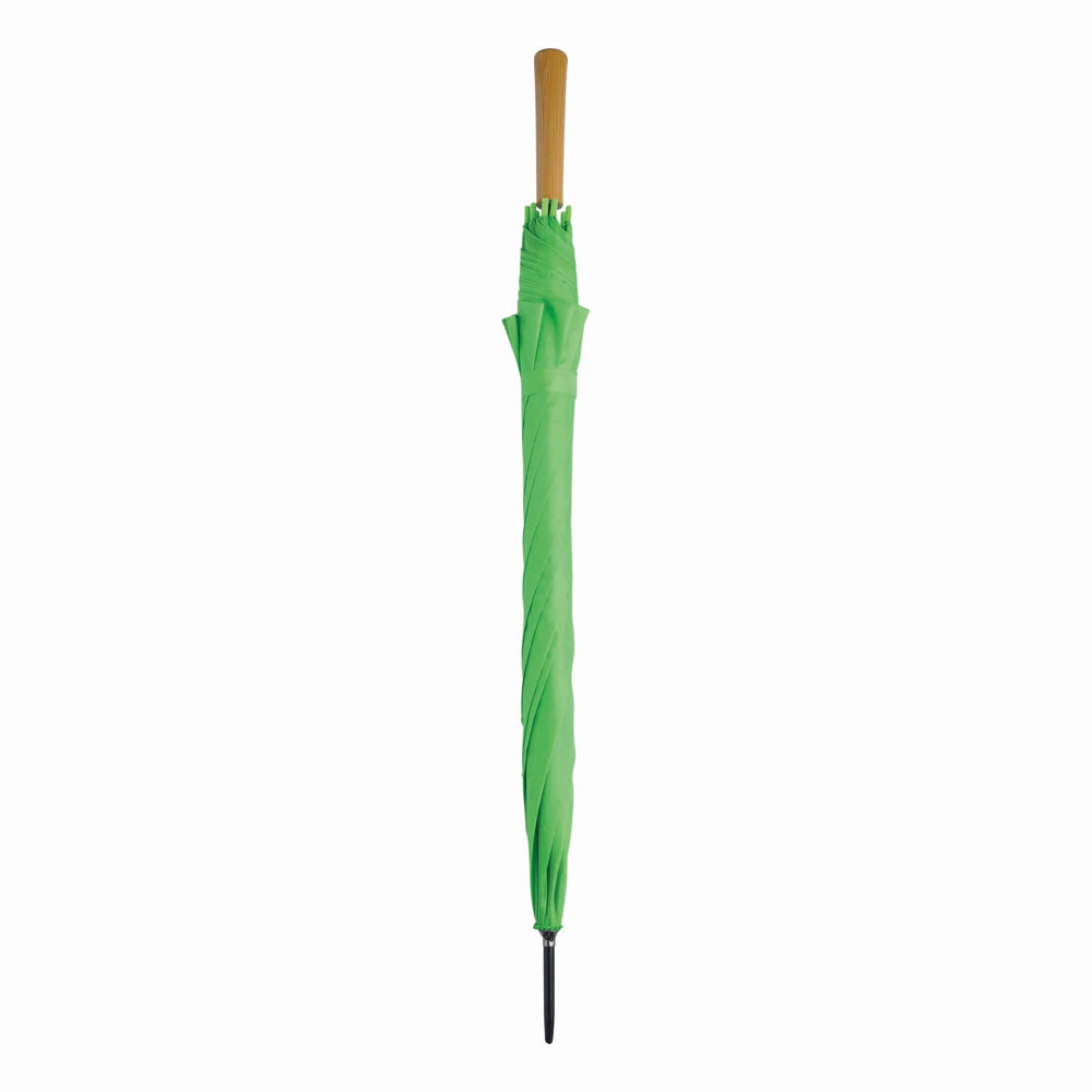Automatic stick umbrella LIMBO: metal shaft and ribs, colour-matching plastic tips, handle with wooden appearance, polyester canopy, closure with Velcro