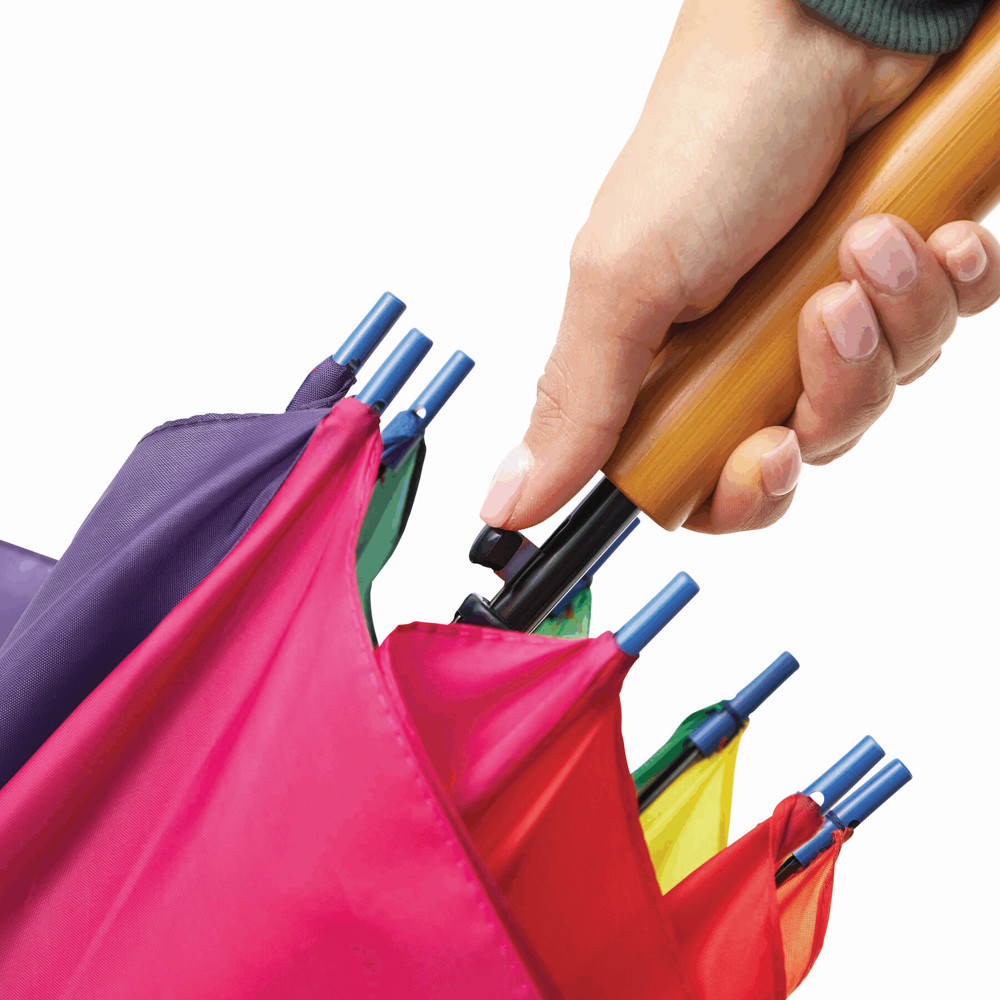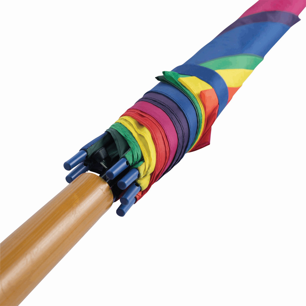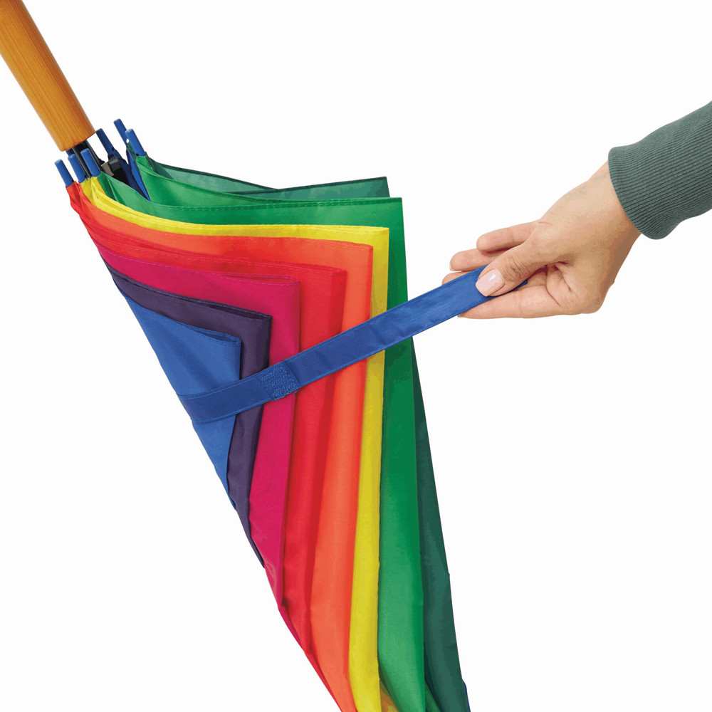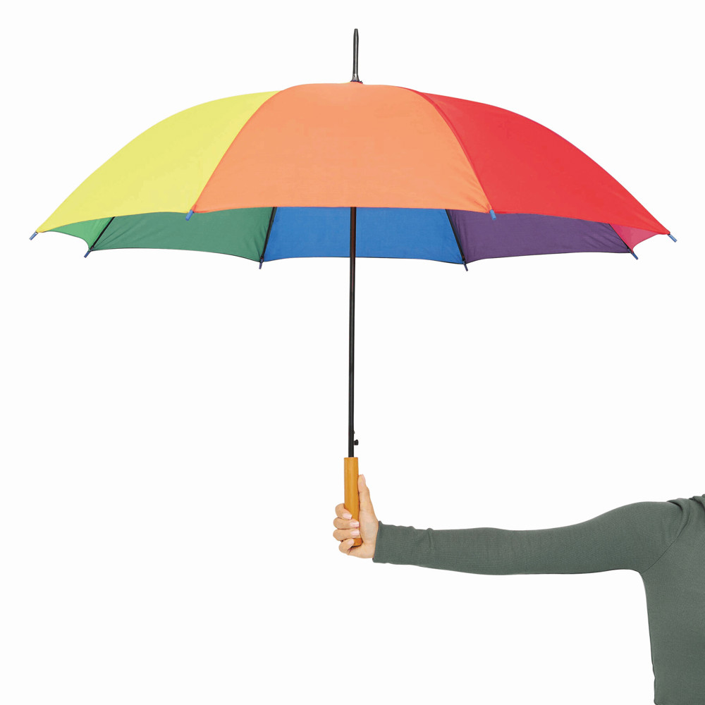 Automatic stick umbrella LIMBO: metal shaft and ribs, colour-matching plastic tips, handle with wooden appearance, polyester canopy, closure with Velcro