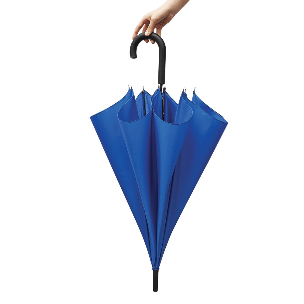 Automatic windproof stick umbrella WIND, with metal shaft, fibreglass ribs and metal tips with a rubber-coated crook handle and a polyester pongee canopy, closure with Velcro