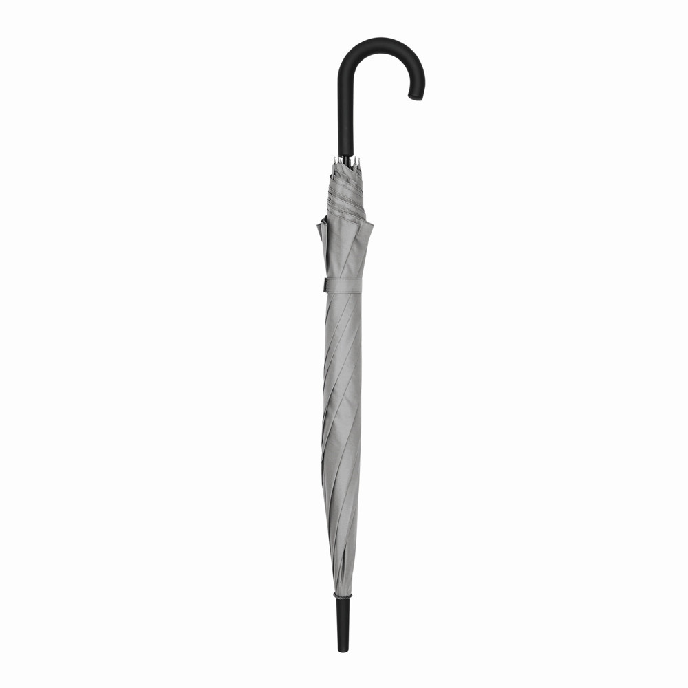 Automatic windproof stick umbrella WIND, with metal shaft, fibreglass ribs and metal tips with a rubber-coated crook handle and a polyester pongee canopy, closure with Velcro