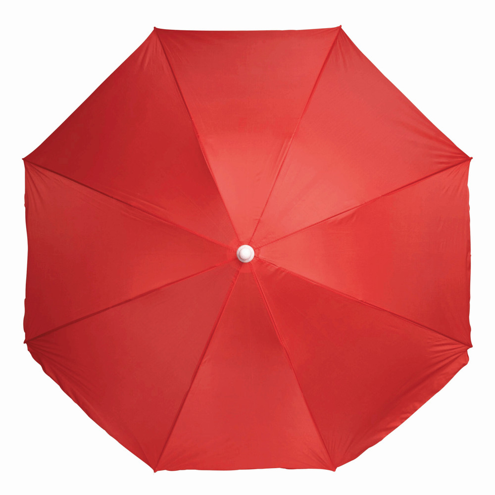 Beach umbrella and parasol SUNFLOWER with 2-piece metal shaft, metal ribs, plastic tips, polyester covering, packed in clear PVC carrying bag