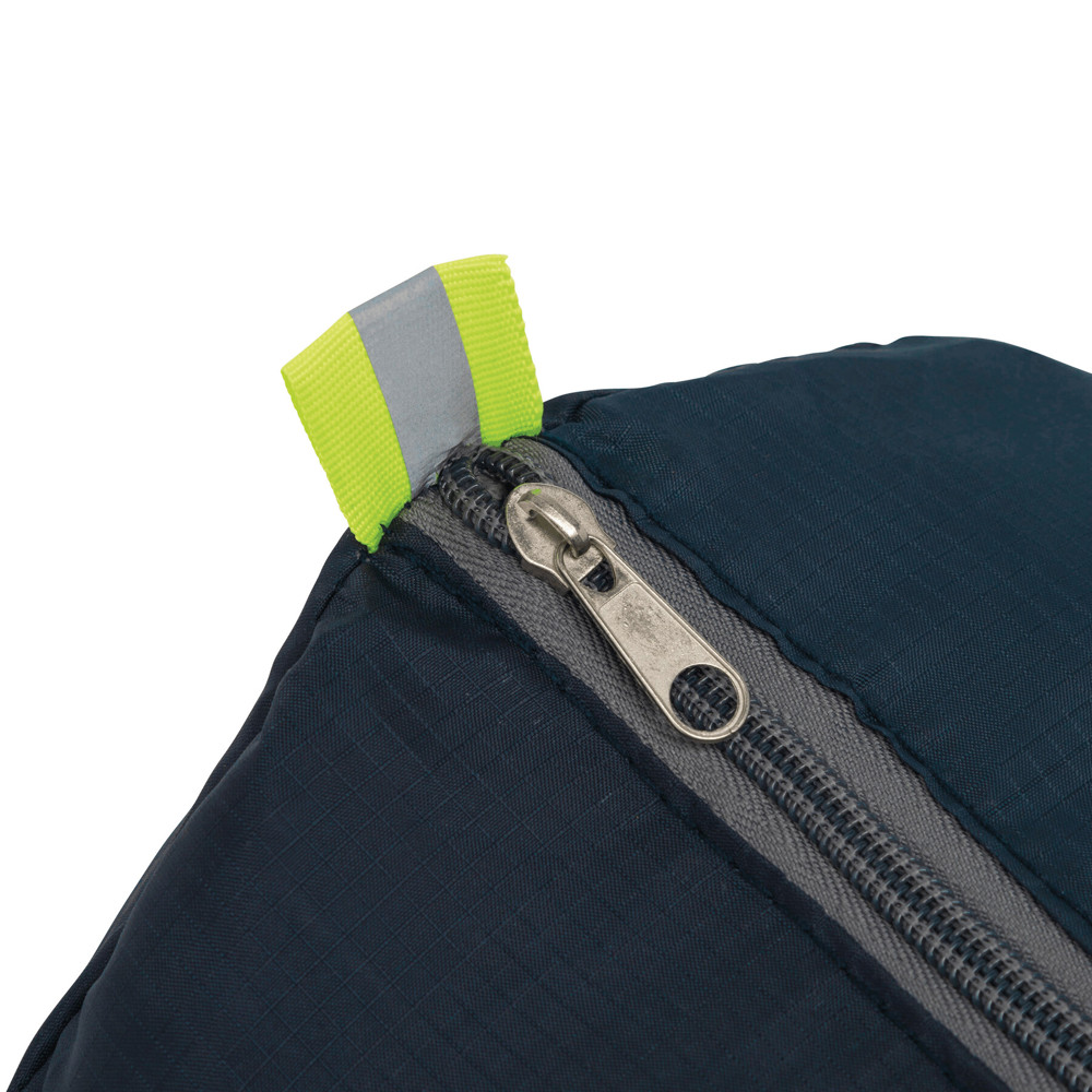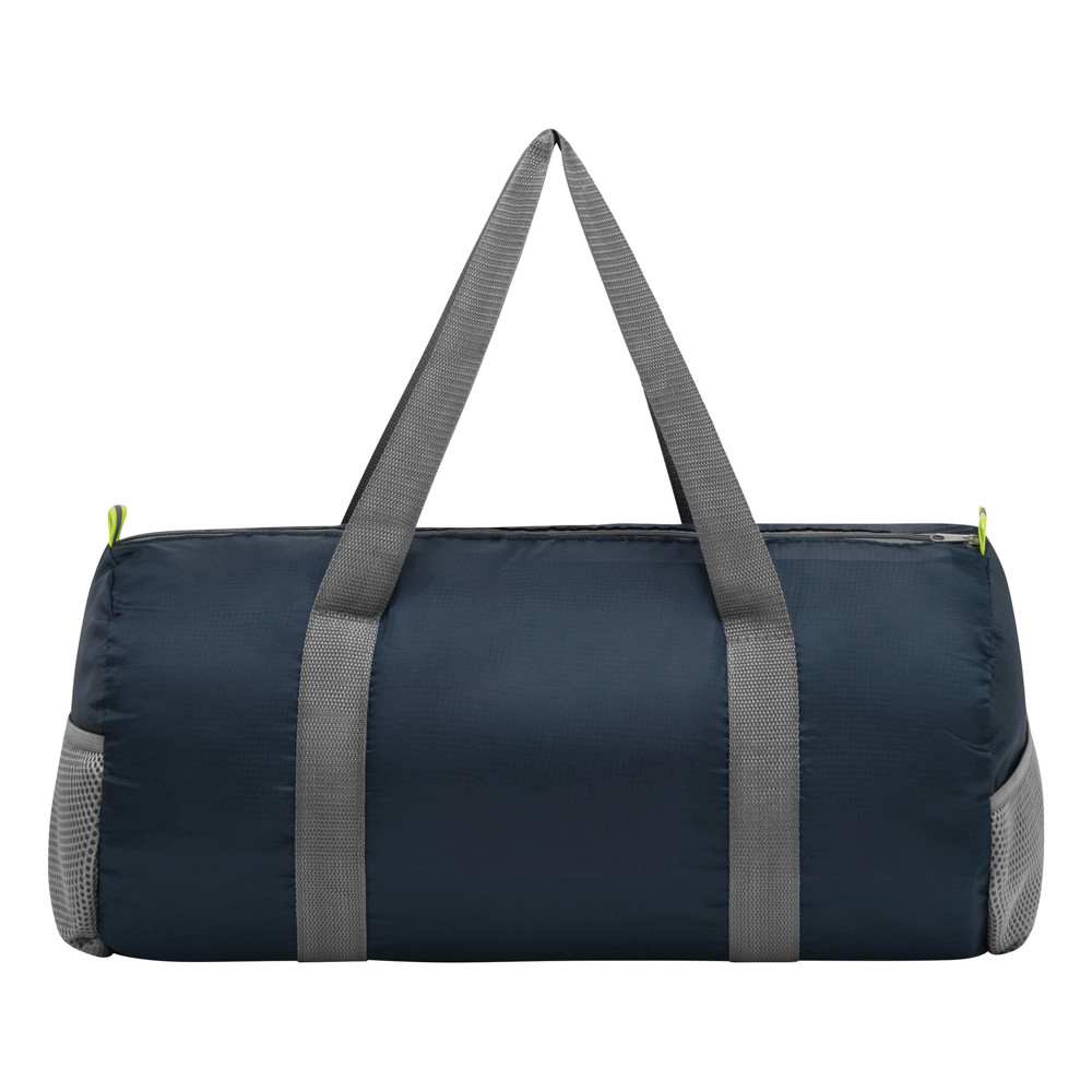 Sports bag VOLUNTEER GYM, foldable: zippered front pocket, zippered main compartment with 2 reflective labels, 2 mesh pockets on the side, 2 long carrying handles – can be folded to a mini bag to save space and fits perfectly into a handbag