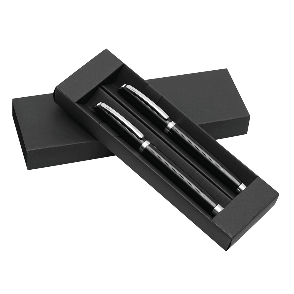 Writing set ALPHABET: consists of twist action ballpoint pen (black ink) and rollerball pen (black ink), supplied in gift box