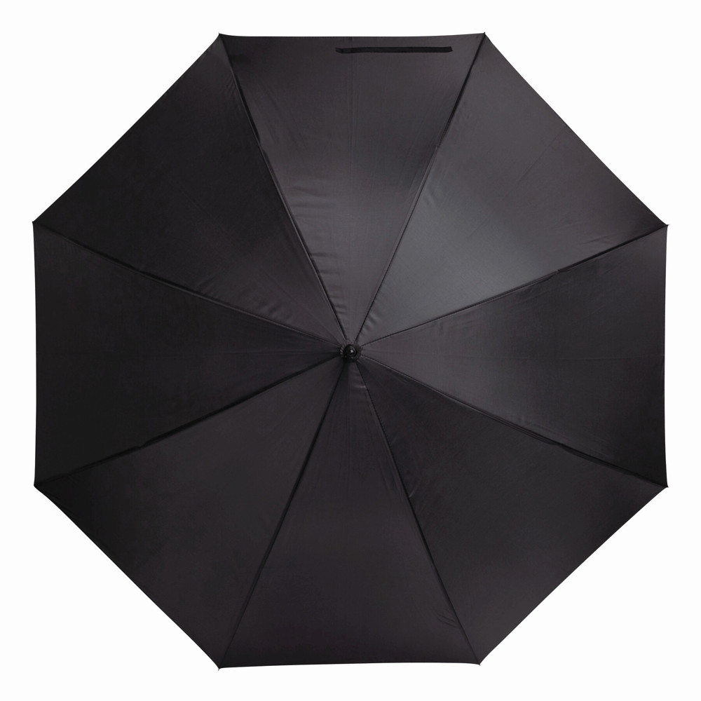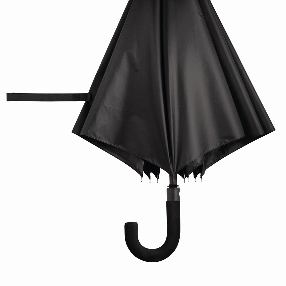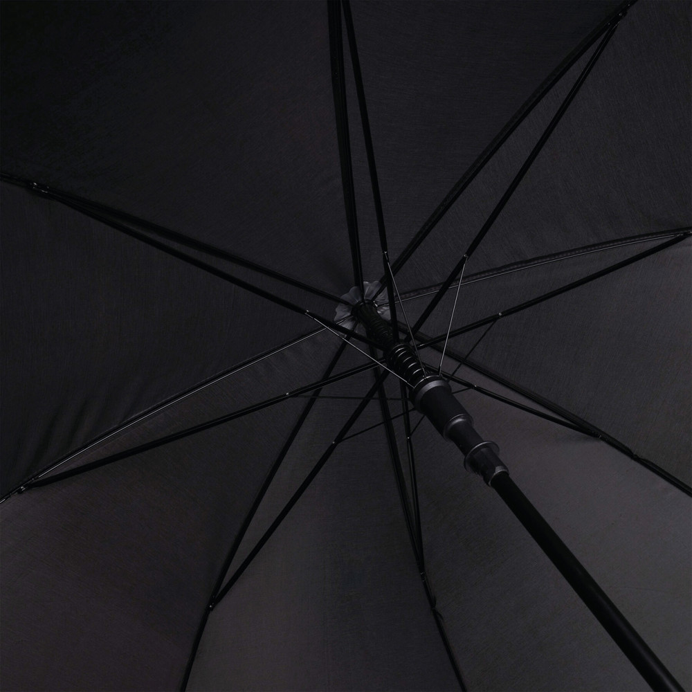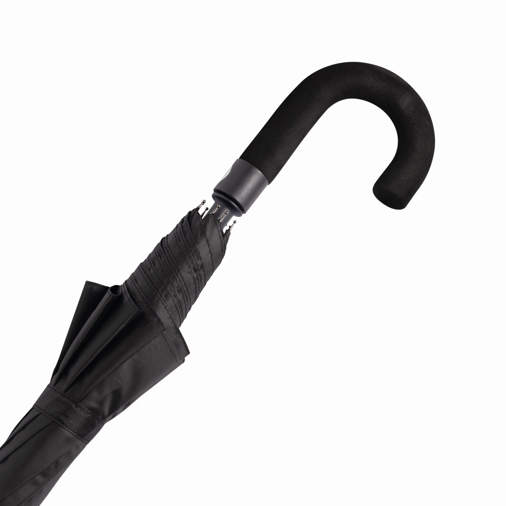 Automatic golf umbrella SUBWAY with black metal shaft, ribs, and tips, black EVA crook handle with silver-coloured press button, polyester canopy with special water-resistant coating, closure with Velcro