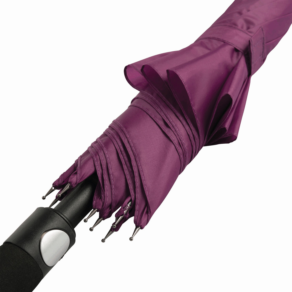 Automatic golf umbrella SUBWAY with black metal shaft, ribs, and tips, black EVA crook handle with silver-coloured press button, polyester canopy with special water-resistant coating, closure with Velcro