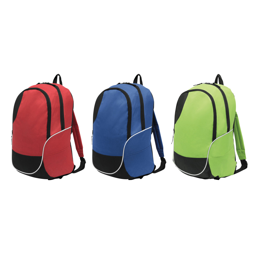 Backpack CURVE: zippered main compartment, zippered front compartment, carrying handle, padded shoulder straps and back