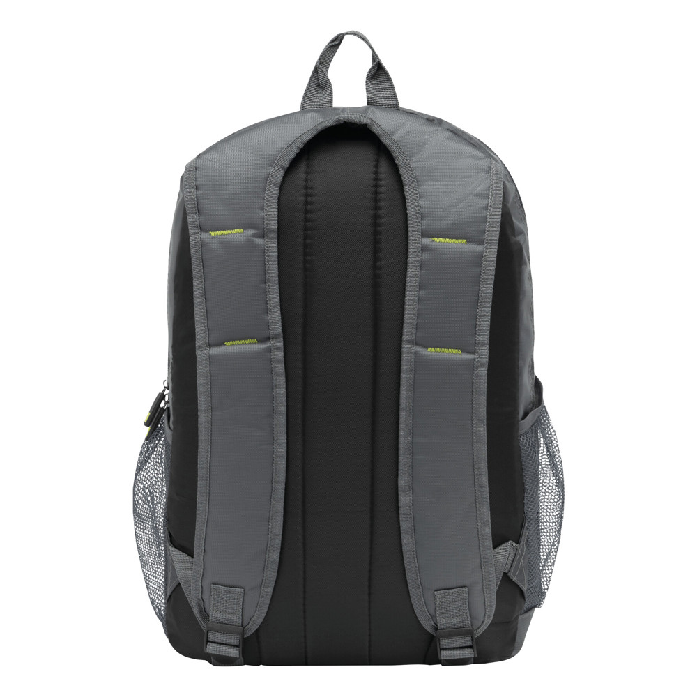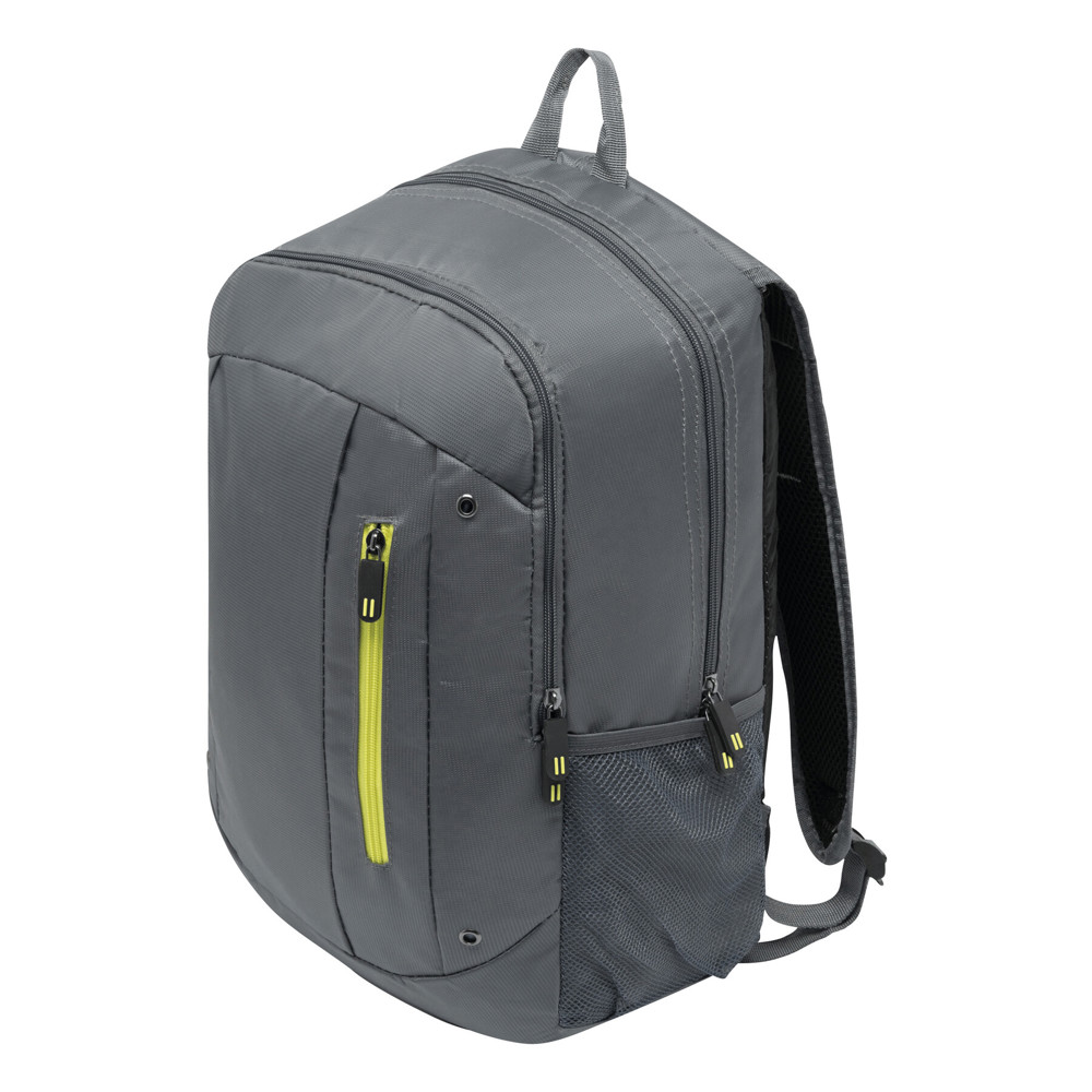 Backpack TALLINN: 1 zippered front pocket with organiser, small vertical front pocket with coloured zip, 1 zippered main compartment with padded interior compartment for laptop or tablet plus additional slip-in pocket, 2 mesh pockets on the side, carrying handle, padded shoulder straps and back support