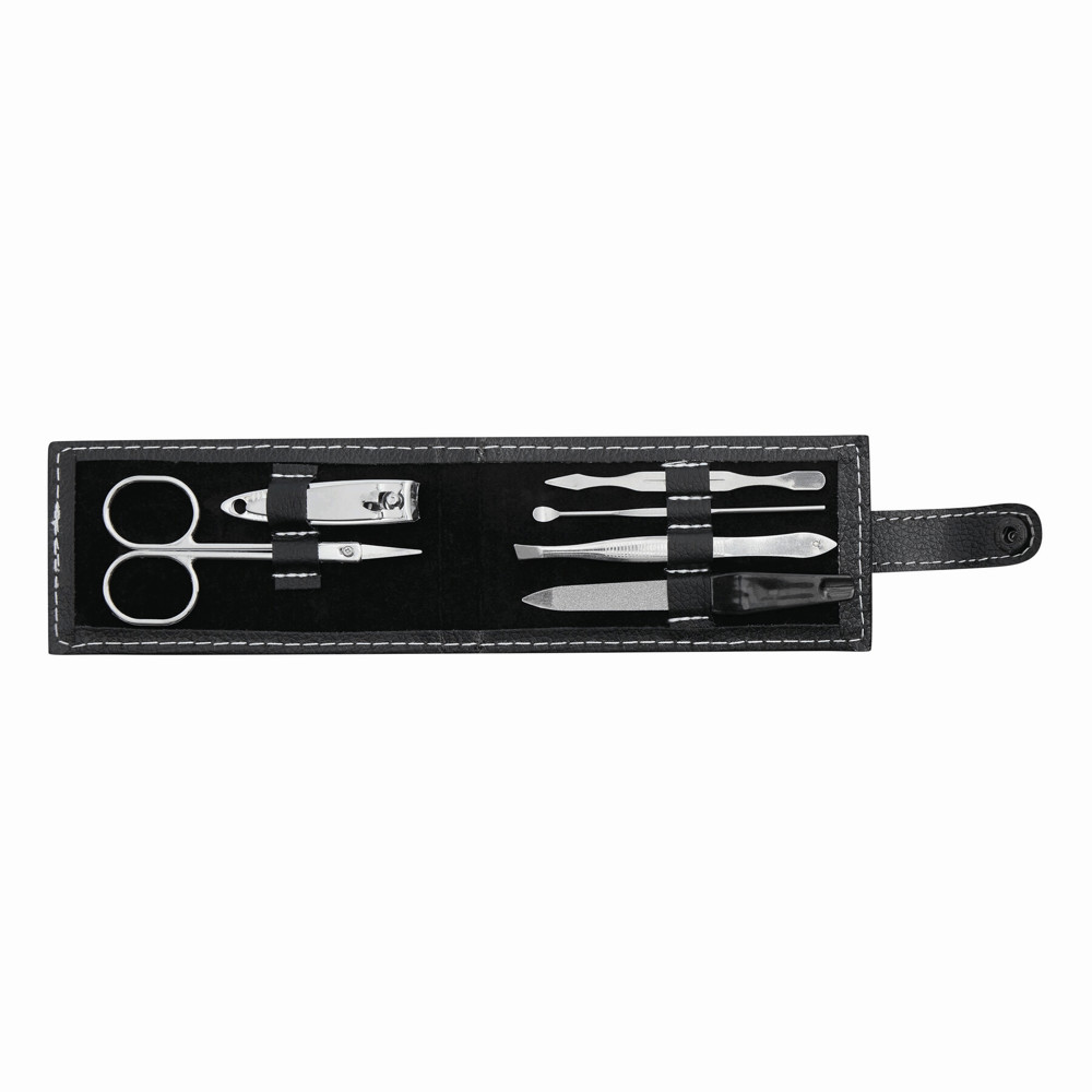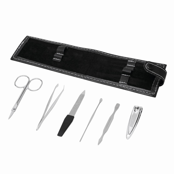Manicure kit ELAINE: consists of a pair of nail scissors, nail file, cuticle pusher, and nail cleaner, packed in a pouch with snap fastener
